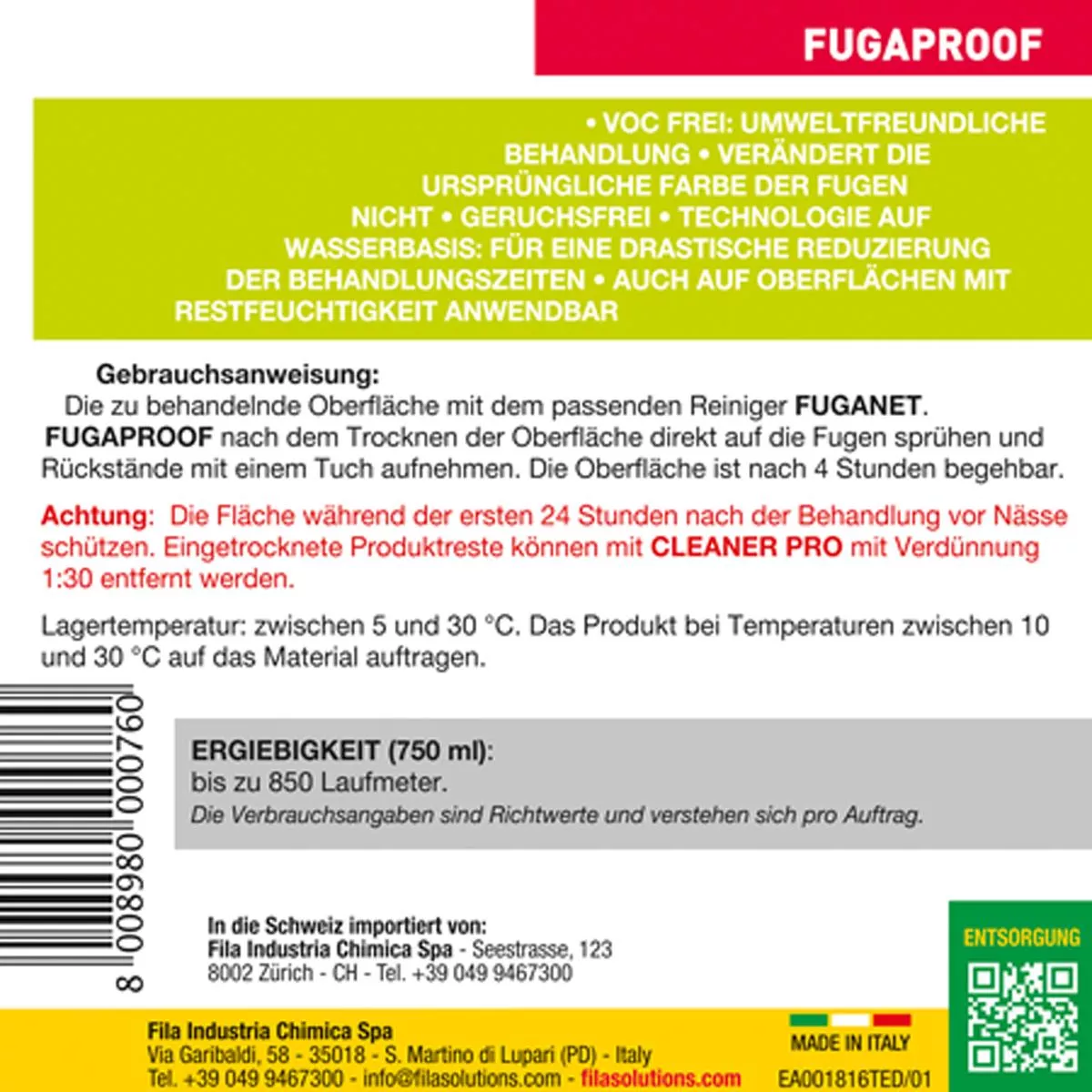 Suojaa alue kosteudelta ensimmäisten 24 tunnin ajan hoidon jälkeen. Kuivuneet tuotejäämät, joita ei poistettu levityksen aikana, voidaan poistaa EASYWASHilla tai CLEANER PRO:lla laimennettuna 1:30.