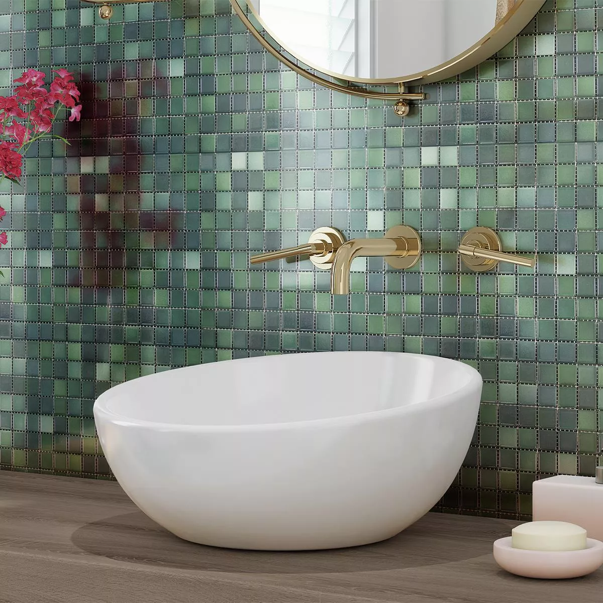Galleria -keraaminen mosaiikkilaatta raikkaassa vihreässä sekoituksessa tuo huoneisiisi ainutlaatuista tunnelmaa tyylikkäällä metalliilmellään ja mattapinnallaan. Kivikoon 23 x 23 mm ja laattamaton kooltaan 29,7 x 29,7 cm, joka on valmiiksi liimattu verkkoon asennusvalmiina, tekee asennuksesta sekä seinille että lattialle yksinkertaista ja tarkkaa työtä.