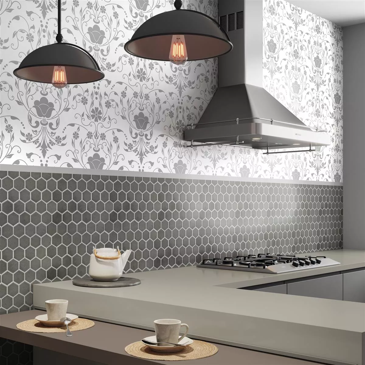Keramiikka Mosaiikki Laatat Eldertown Kuusikulmio Harmaa