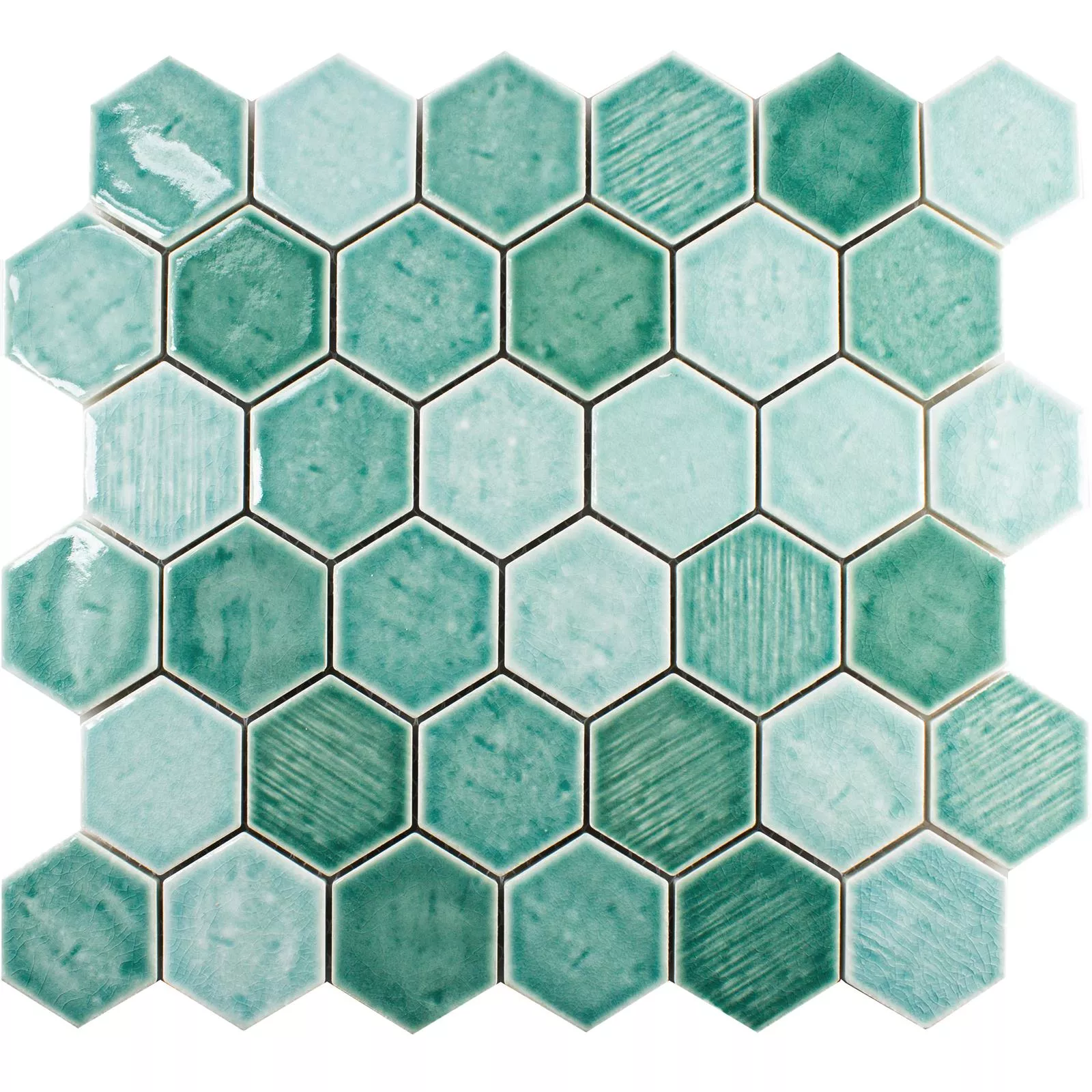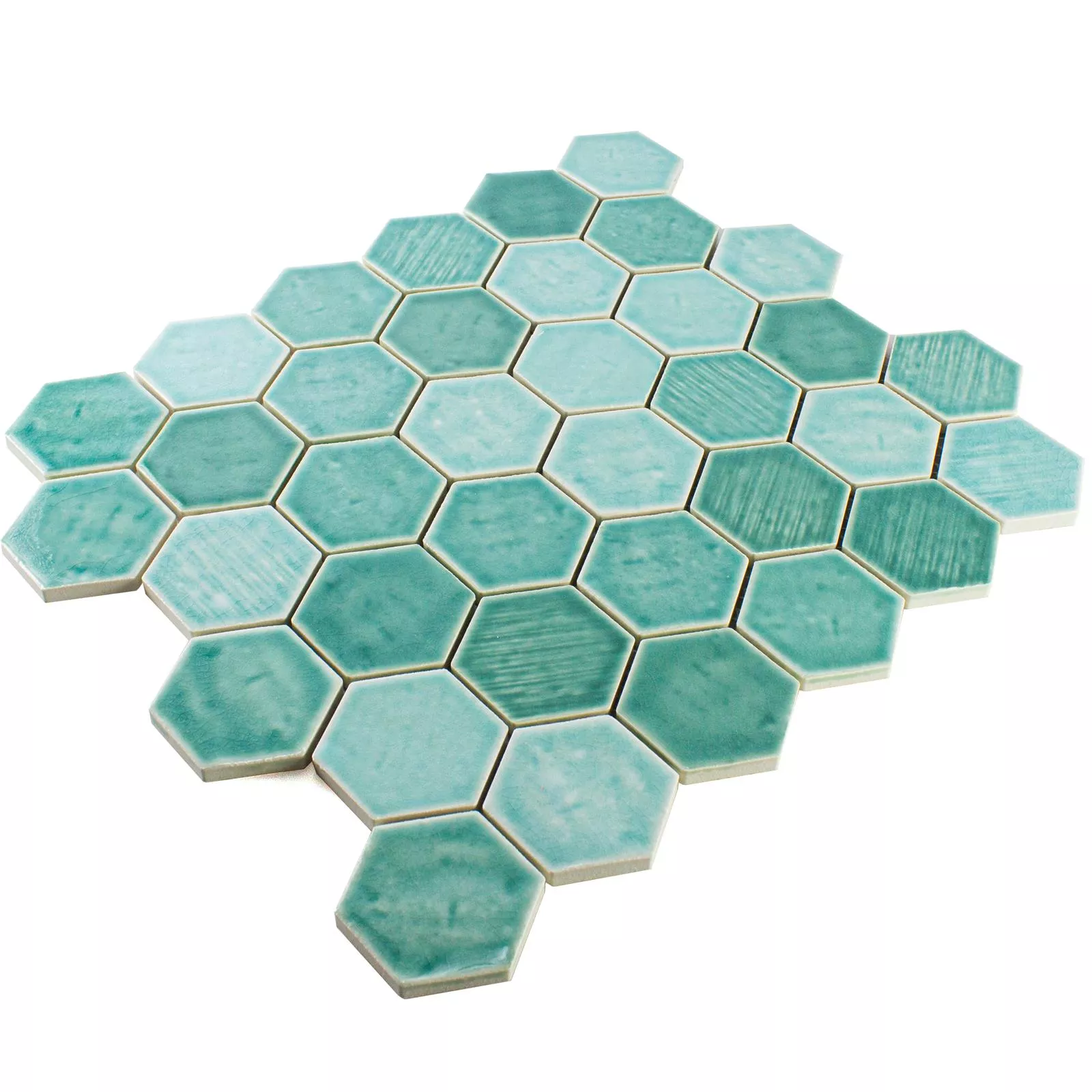 Keramiikka Mosaiikki Laatta Roseburg Kuusikulmio Kimaltelevaa Turkoosi