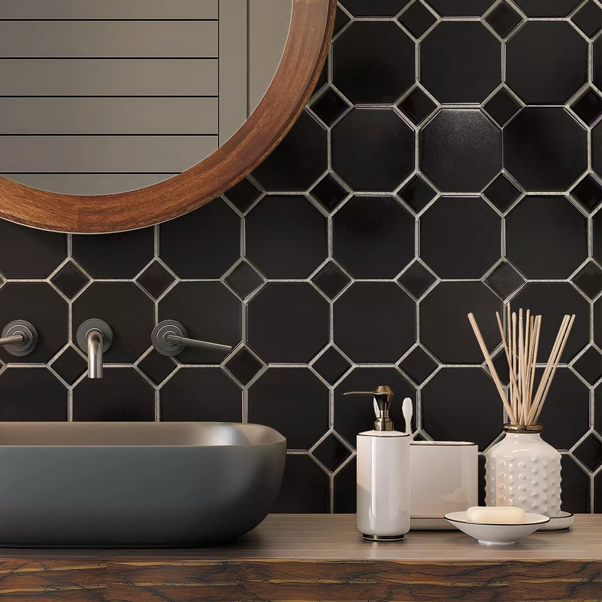 Kuvio osoitteesta Keramiikka Mosaiikki Laatat Kahdeksankulmio Fürstenberg Musta