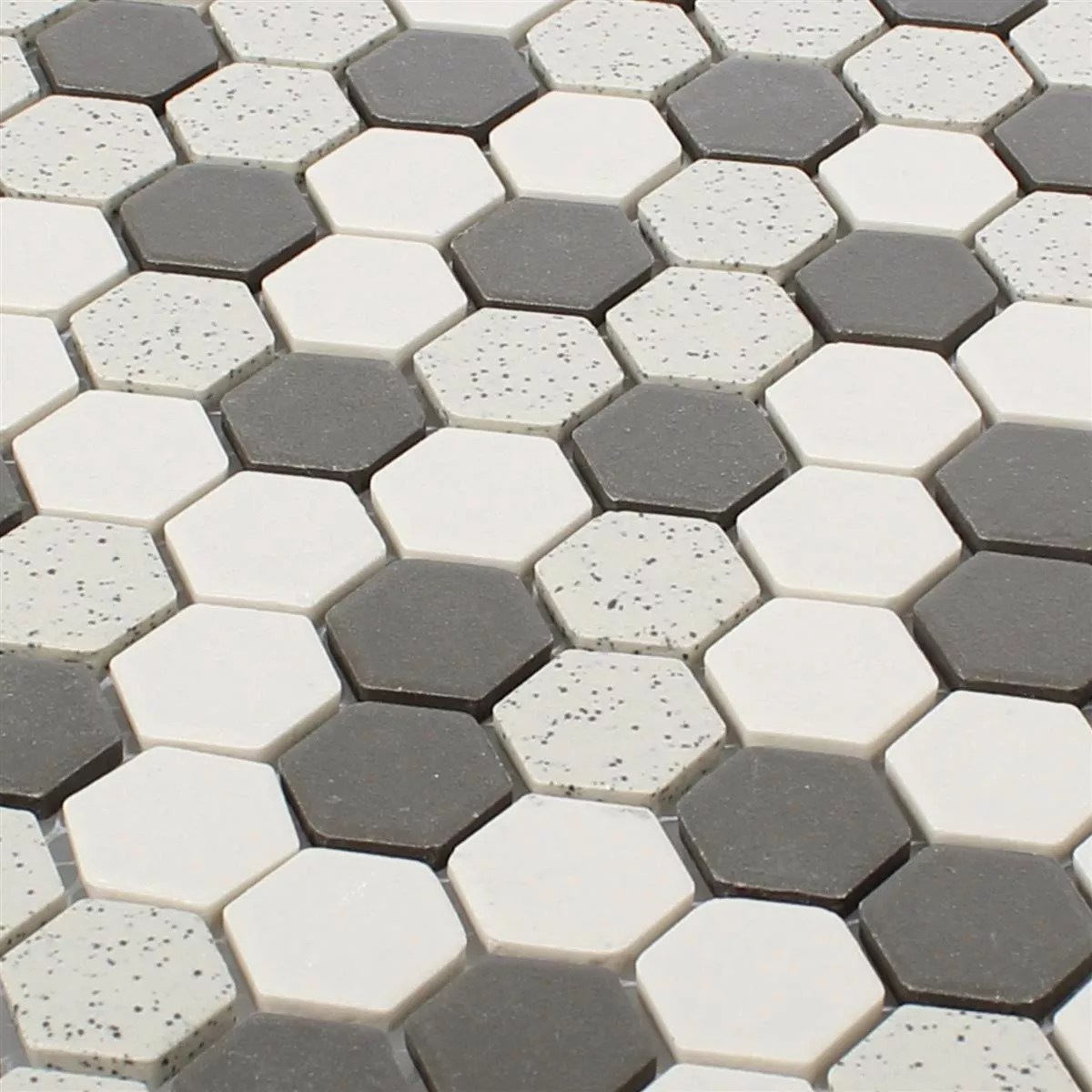 Kuvio osoitteesta Keramiikka Mosaiikki Laatat Monforte Kuusikulmio Musta Harmaa