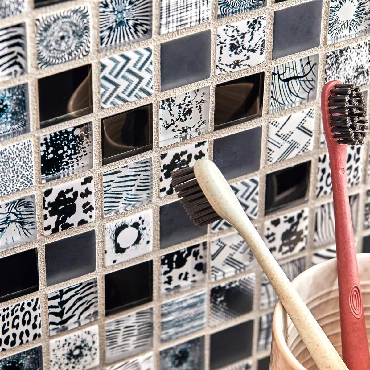Kuvio osoitteesta Lasimosaiikki Laatat Cornelia Retro Optiikka Musta