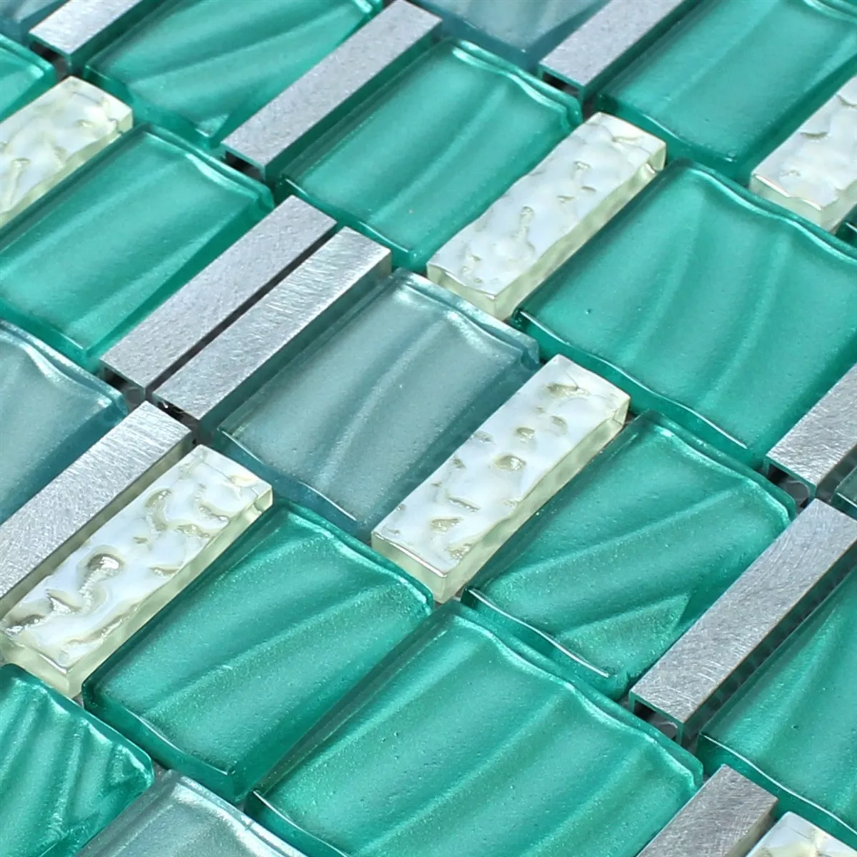 Kuvio osoitteesta Mosaiikki Laatat Lasi Alumiini Vihreä Hopea Mix
