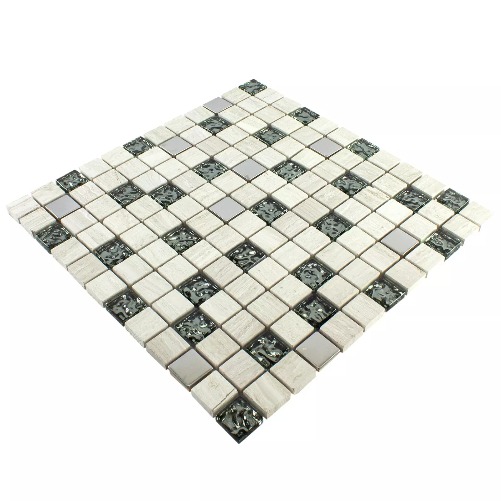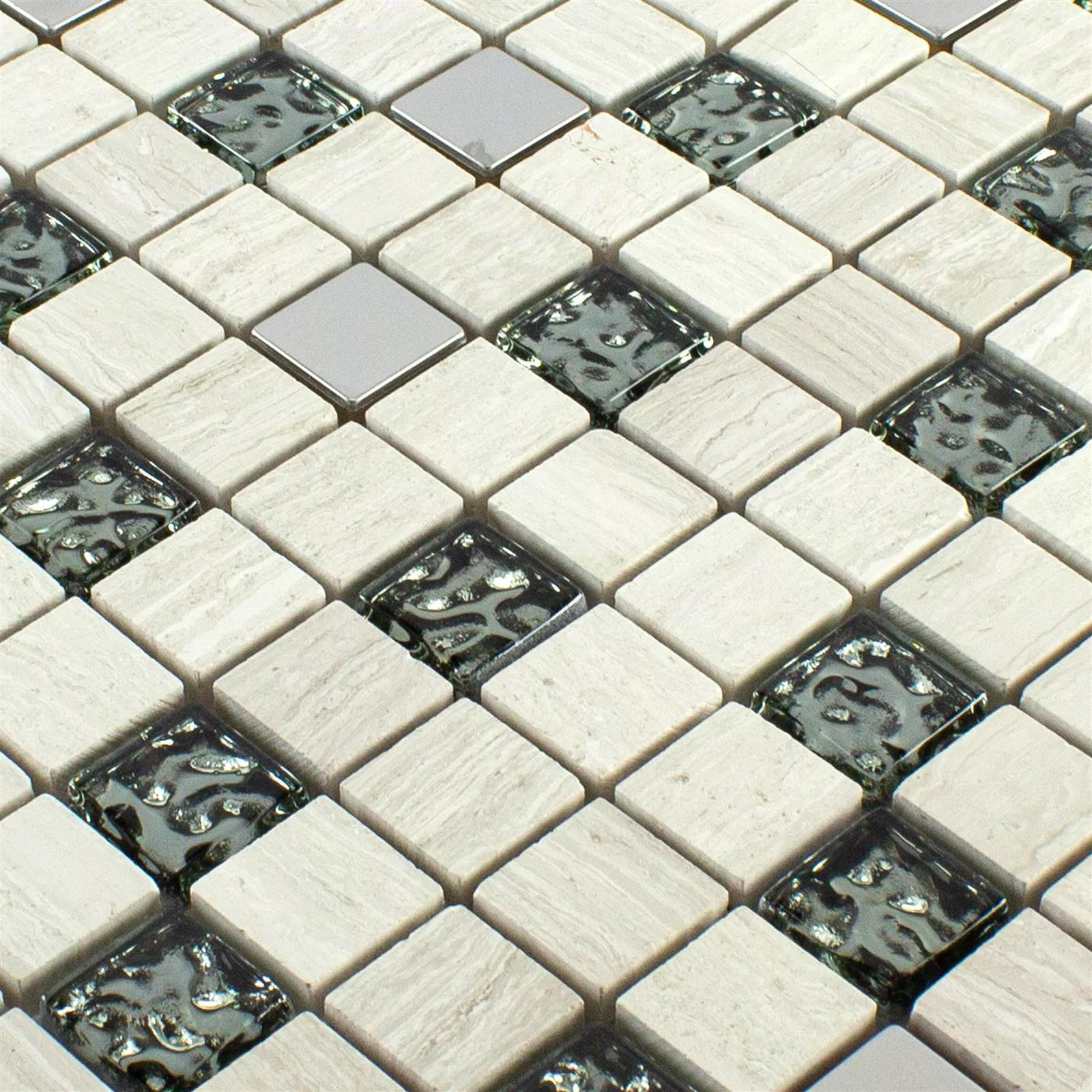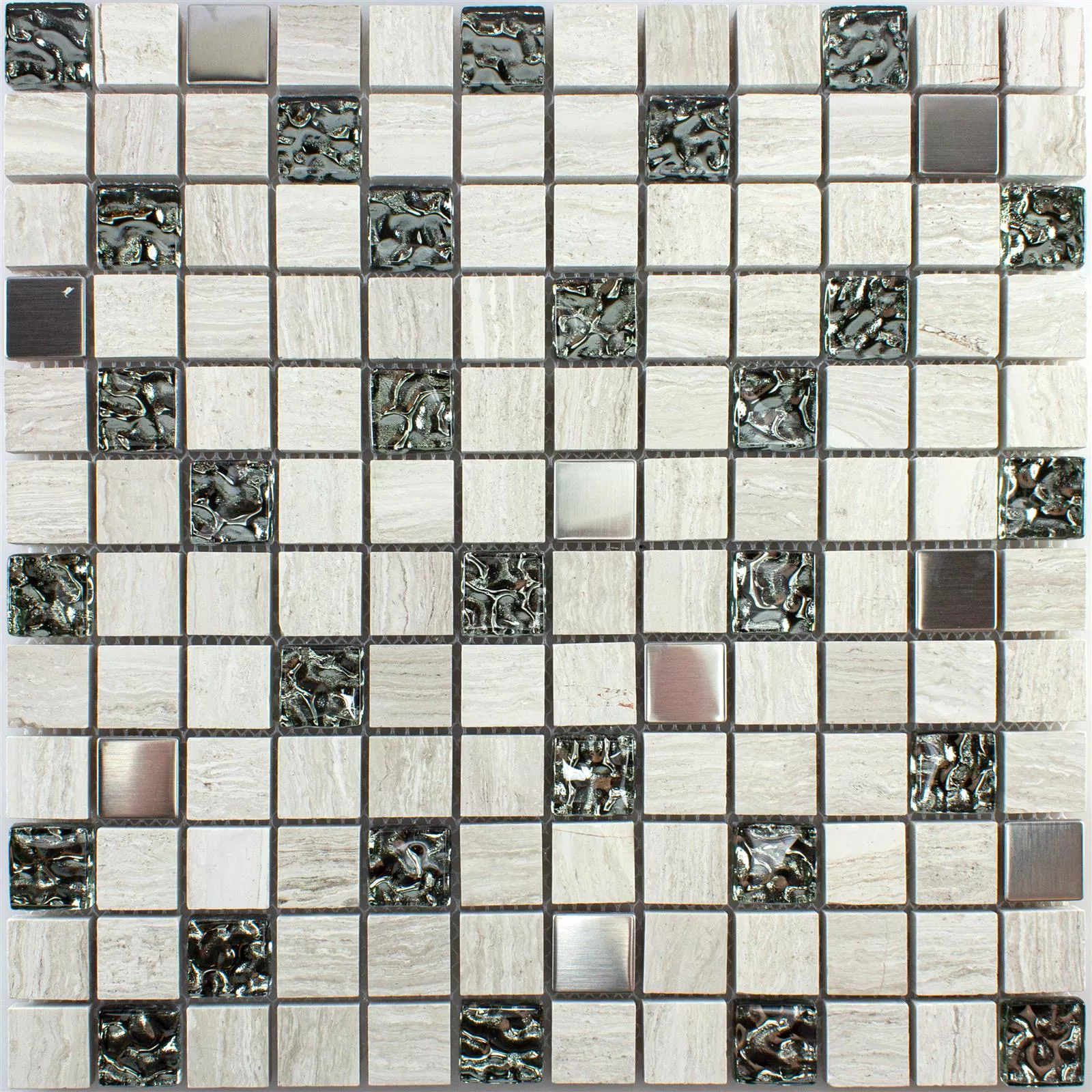 Lasi Luonnonkivi Metalli Mosaiikki Laatta Fulda Harmaa Hopea