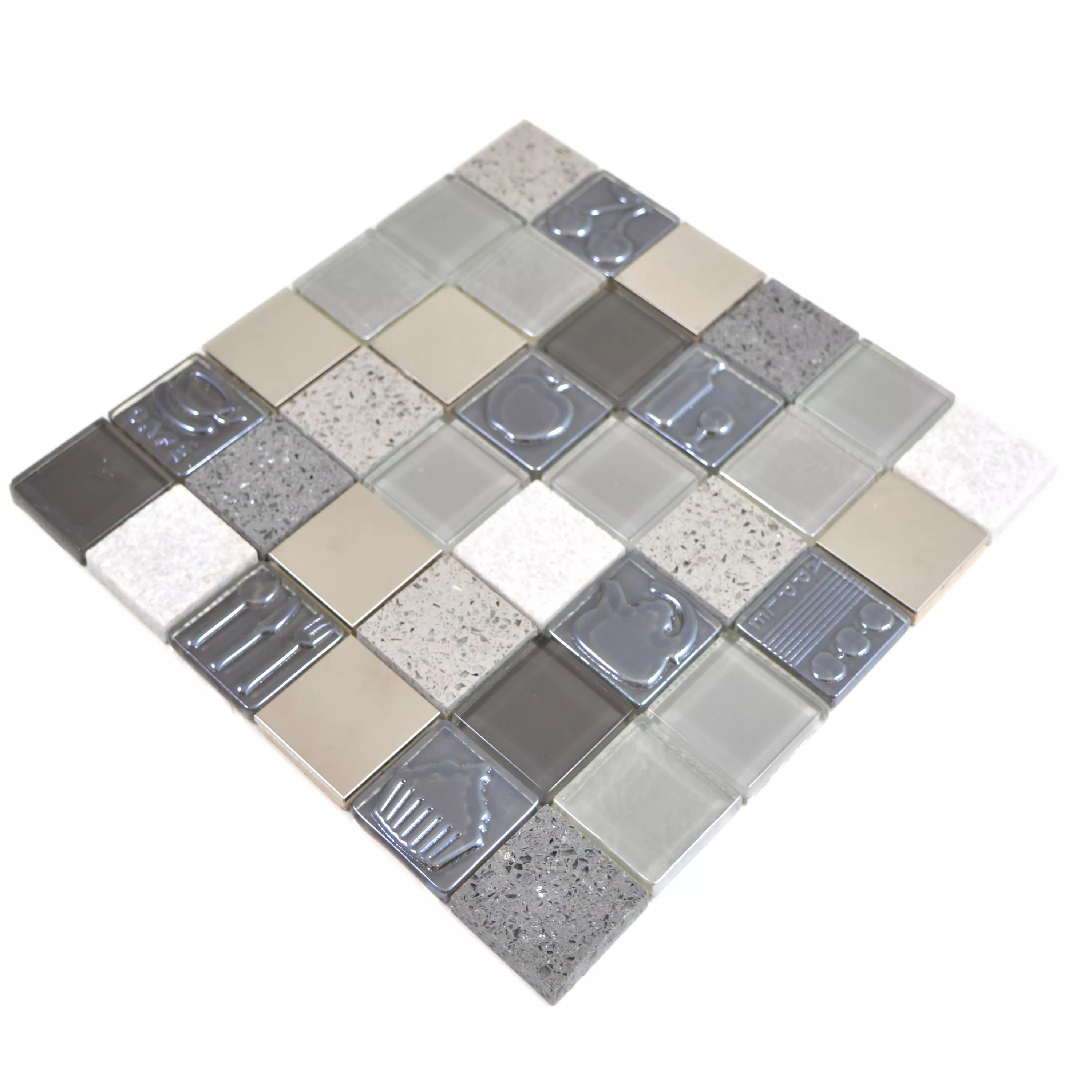 Lasi Ruostumaton Teräs Luonnonkivi Mosaiikki Laatat Emporia Harmaa Hopea