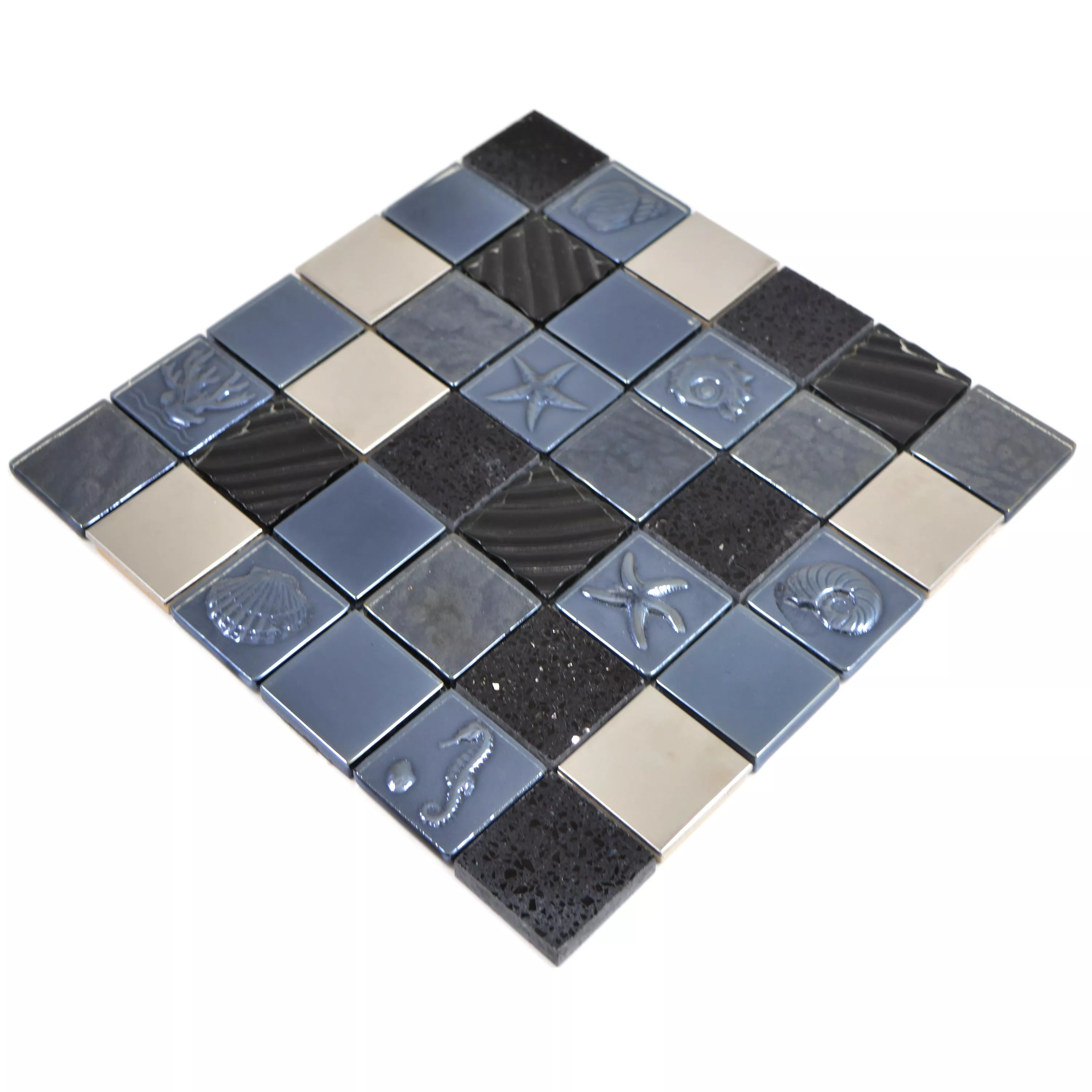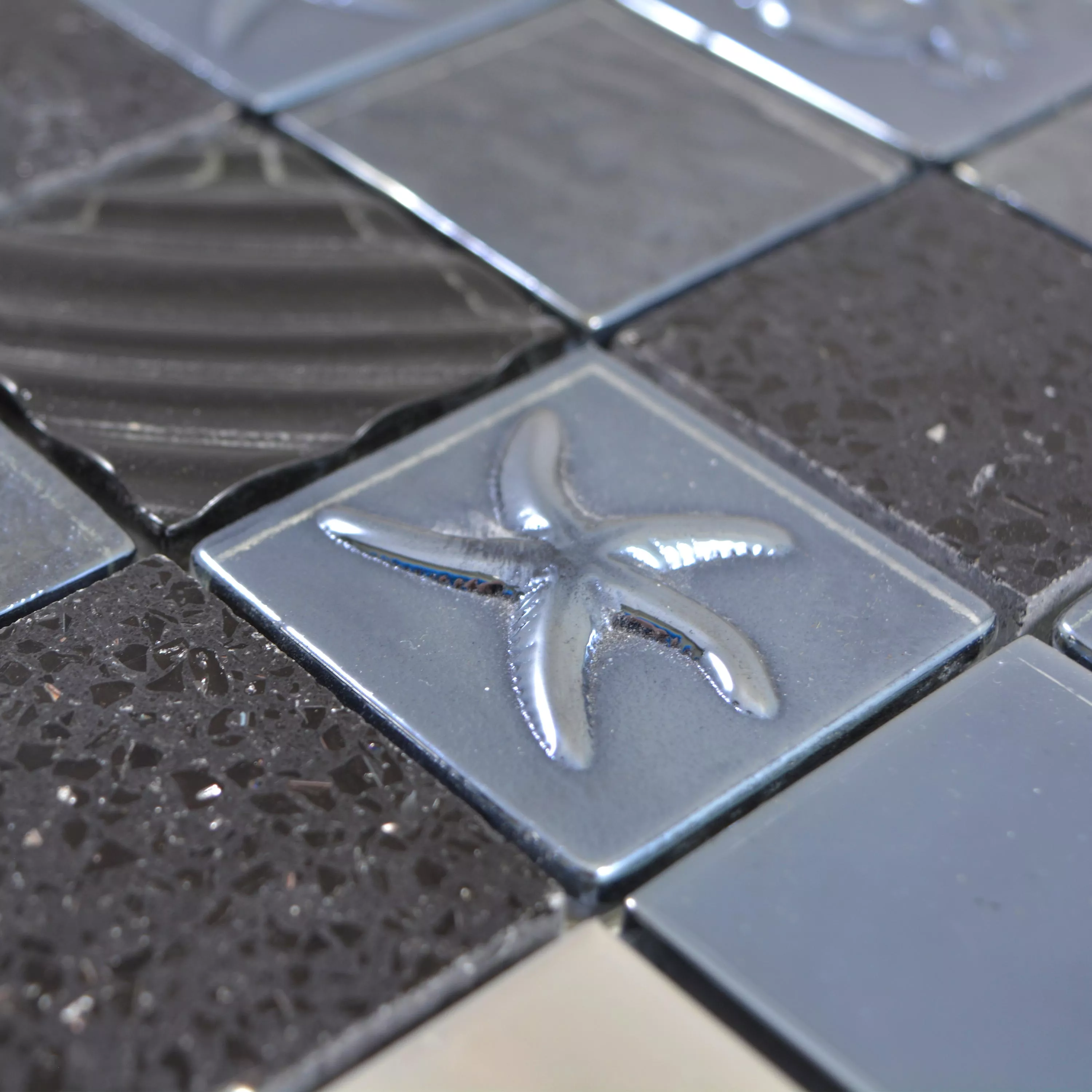 Lasi Ruostumaton Teräs Luonnonkivi Mosaiikki Laatat Emporia Musta Hopea