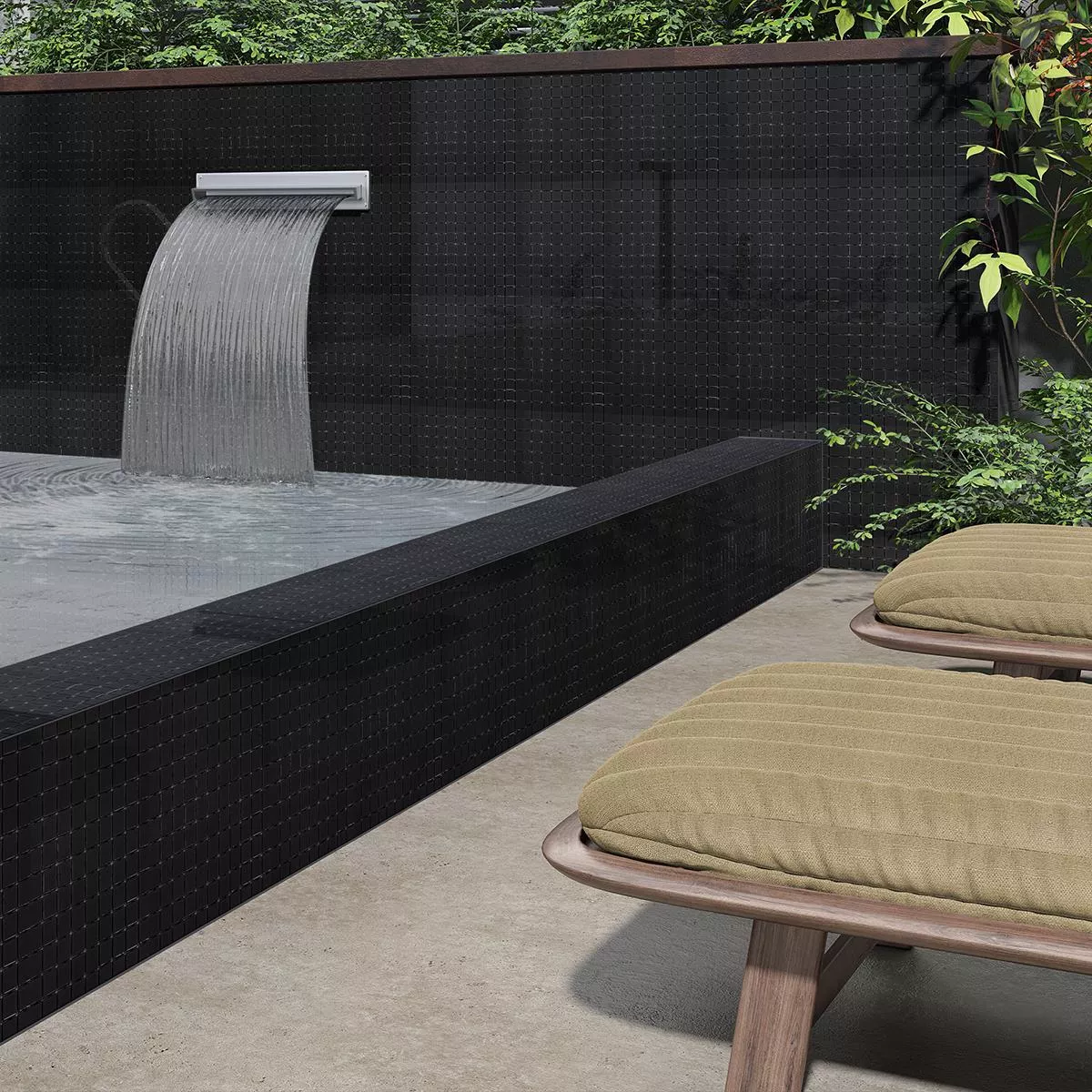 Musta Venetia Pool Mosaic on ihanteellinen valinta tyylikkäisiin ja kestäviin pintaratkaisuihin. Jokainen matto on kooltaan 0,10 m² ja tekee vaikutuksen neliömäisellä 31,6 x 31,6 cm:llä, jonka kivikoko on 25 x 25 mm ja paksuus 4 mm.