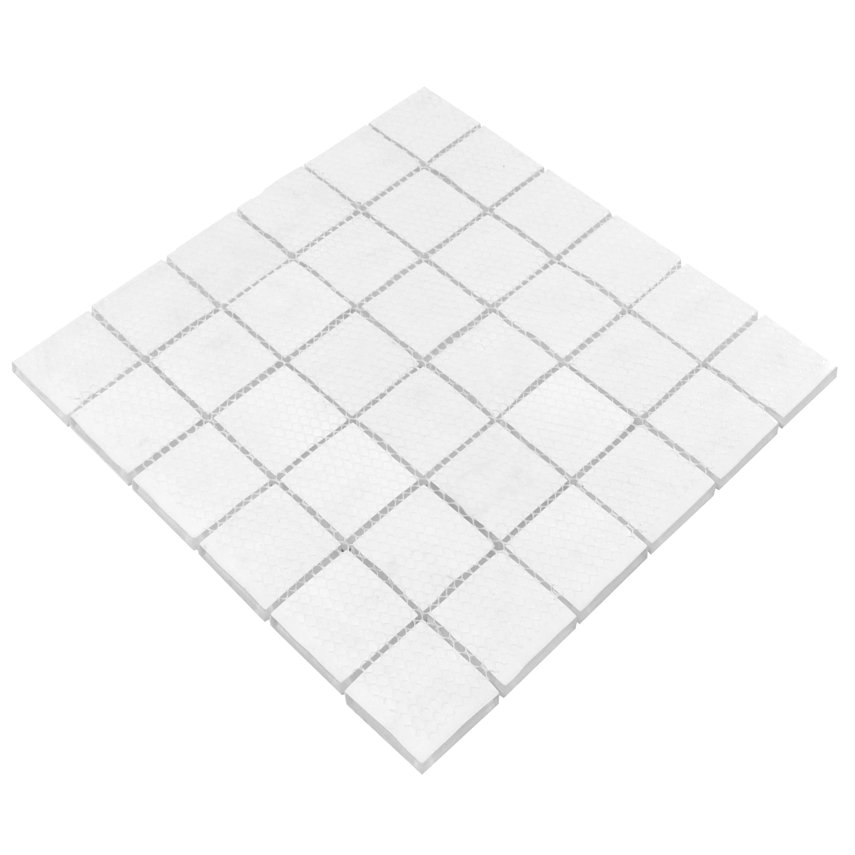 Glasgow- laatan kivikoko on 48 x 48 mm ja paksuus 8 mm, joten se tarjoaa sekä vakautta että silmiinpistävää visuaalista ilmettä. Laatta/mattokoko 29,8x29,8 cm kattaa 0,088 m²:n alueen per matto ja on saatavana neliön muodossa. Runsas 3 mm sauman leveys varmistaa puhtaan ja tasaisen asennuskuvion.