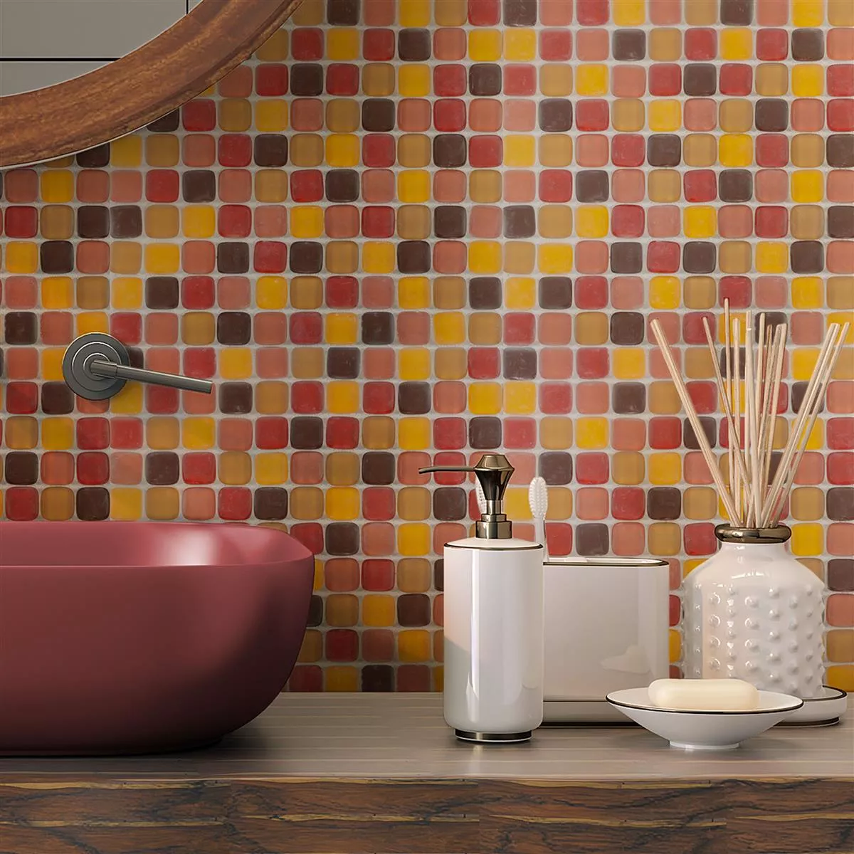 Lasimosaiikki Laatat Ponterio Frosted Punainen Mix