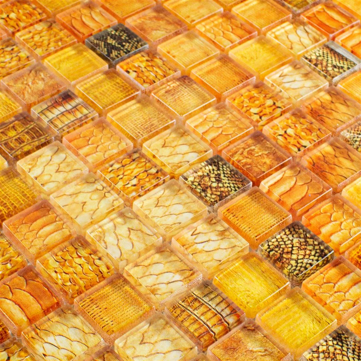 Eloisan oranssinväriset Python-lasimosaiikkilaatat tuovat seinäsuunnitteluun dynaamista energiaa ja ripauksen eksklusiivisuutta. Nämä mosaiikkilaatat tarjoavat kiiltävän pinnan ja laadukkaiden lasikivien ansiosta värikkään ja helppohoitoisen ratkaisun mihin tahansa seinään.