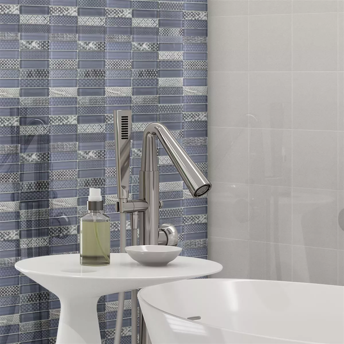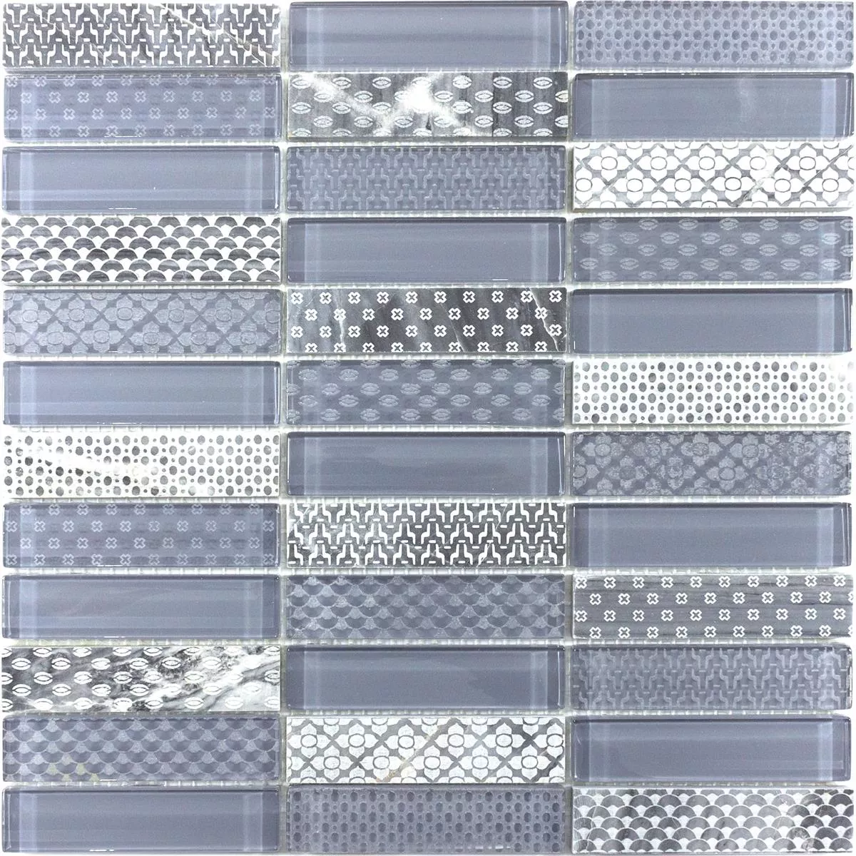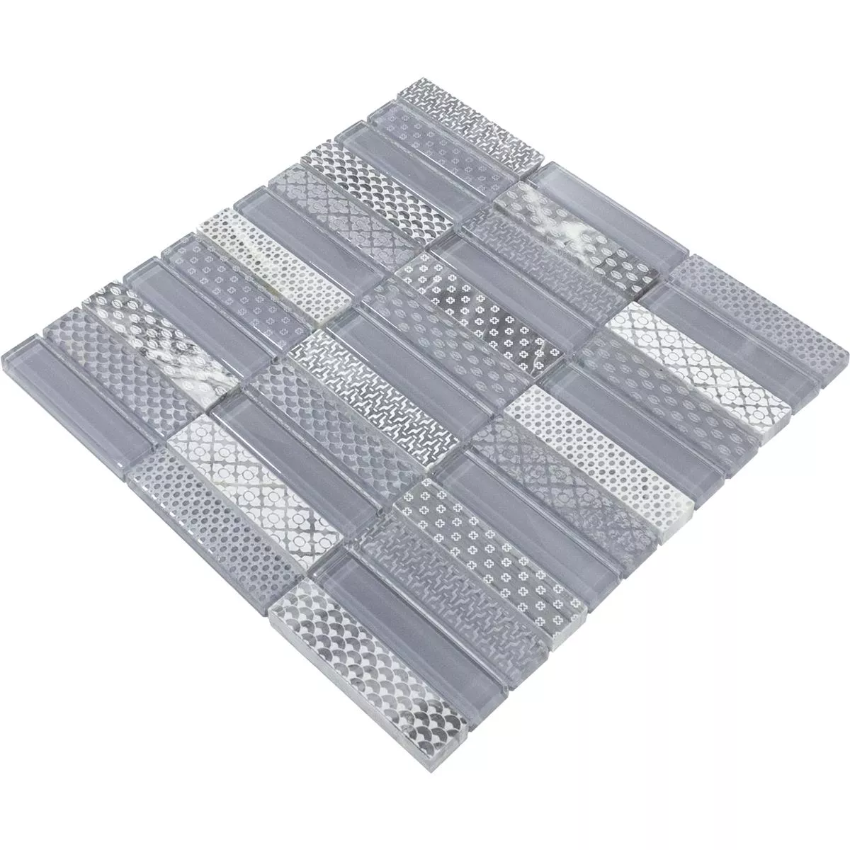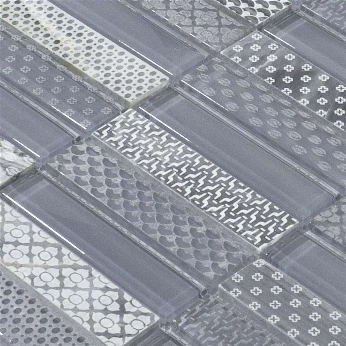Lasinen Luonnonkivimosaiikki Laatat Celestiana Ornamentti Brick Harmaa Mix