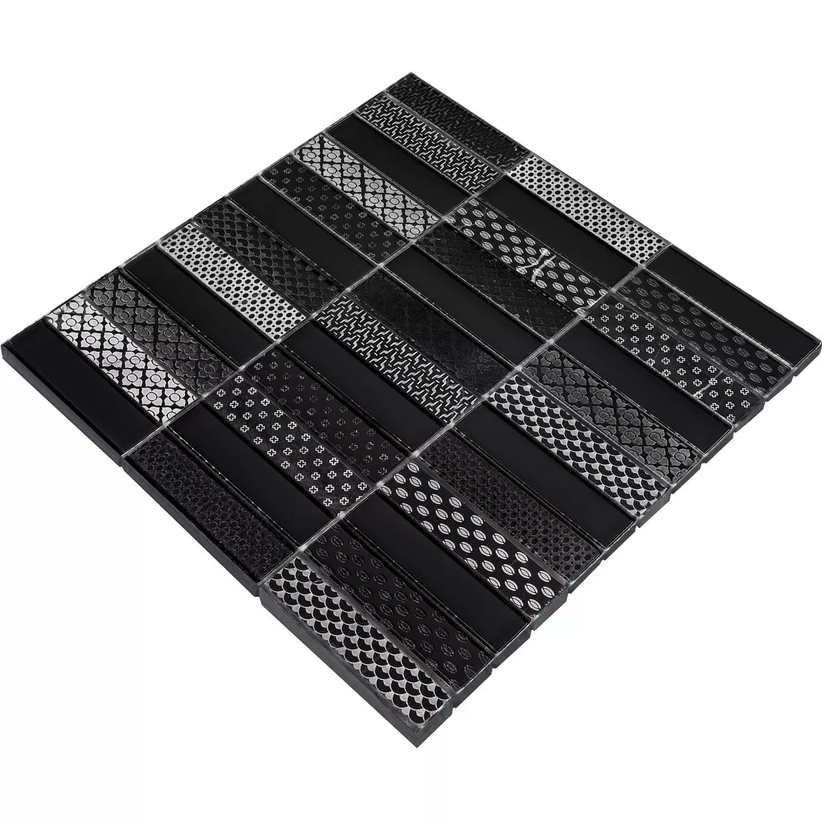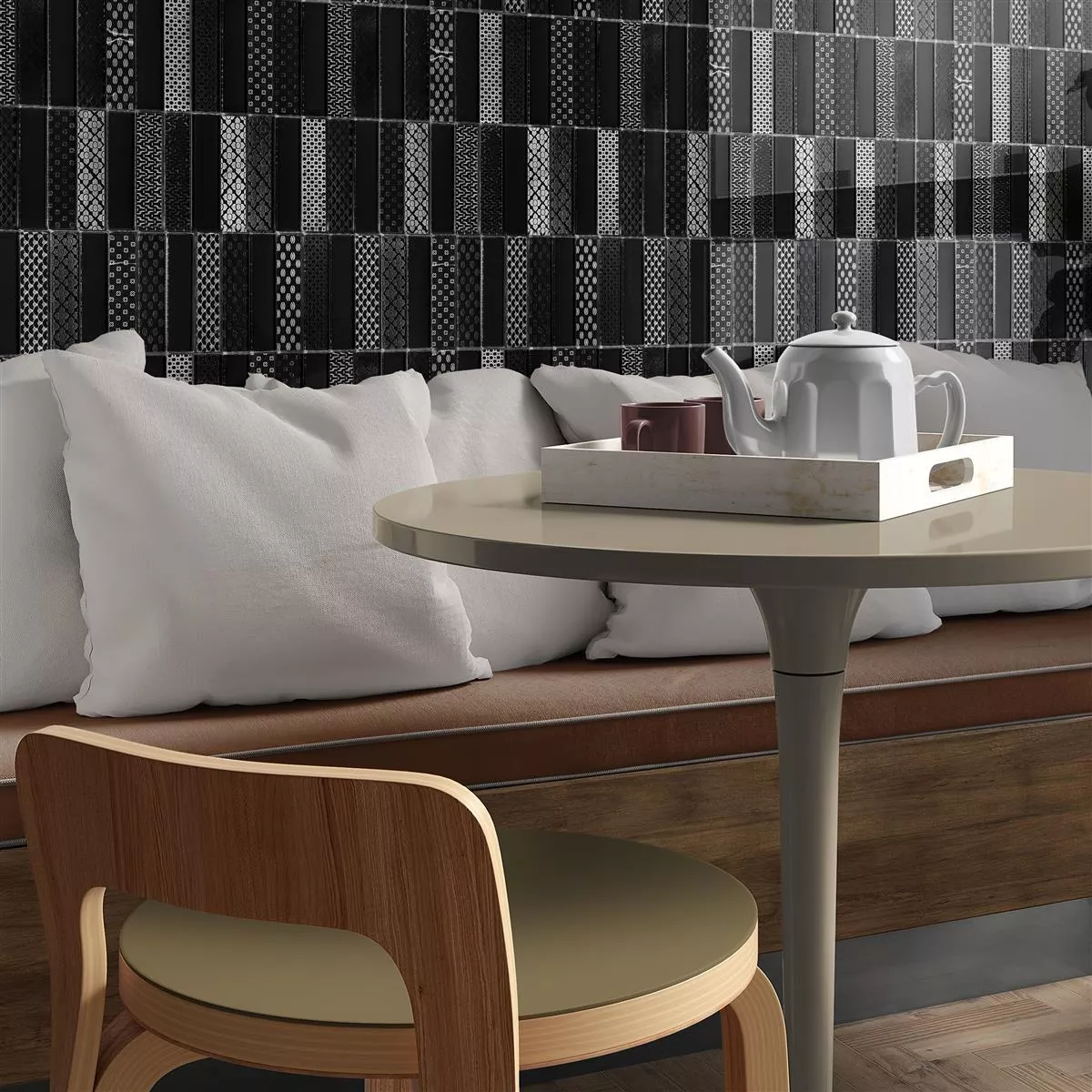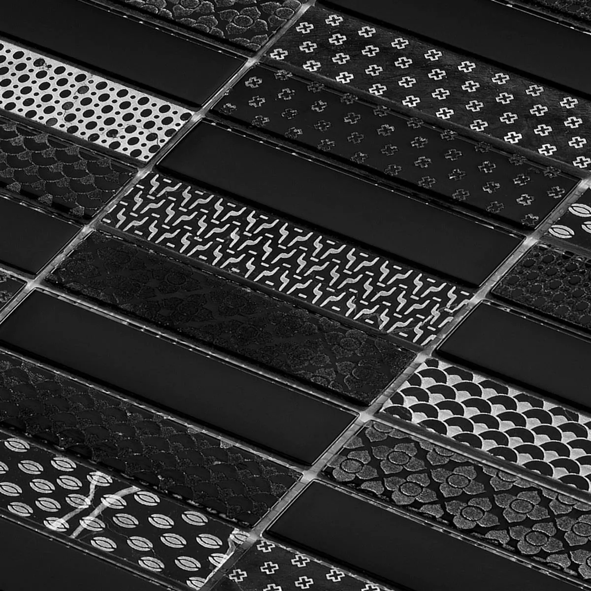 Lasiset luonnonkivimosaiikkilaatat Celestiana Ornament Brick Mix Black Mix - eleganssia tummassa hienostuneisuudessa.
