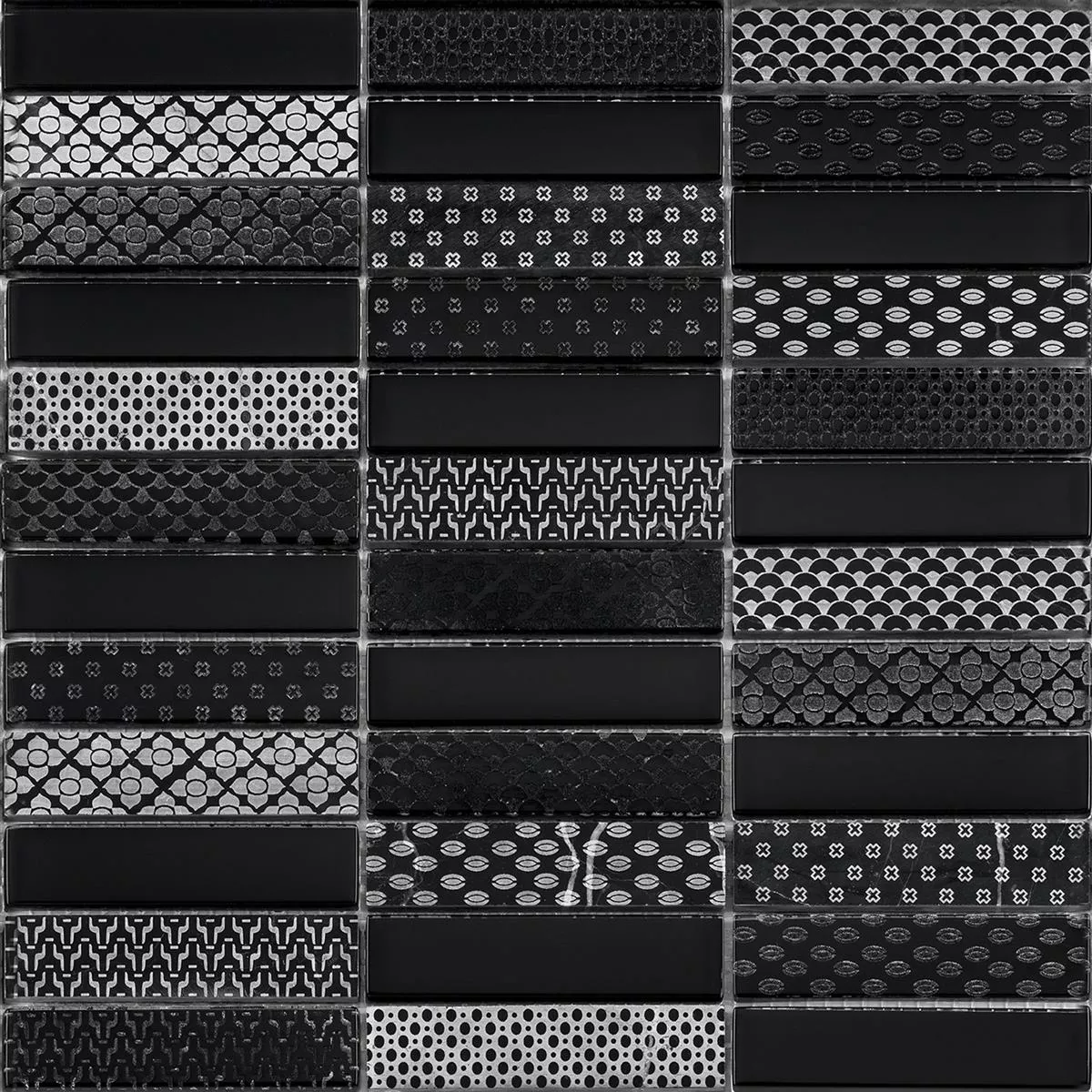 Lasinen Luonnonkivimosaiikki Laatat Celestiana Ornamentti Brick Musta Mix
