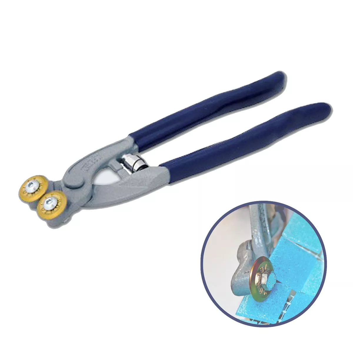 Patentoidut Montolitin mosaiikkipihdit leikkauspyörillä pienten lasimosaiikkien käsittelyyn ja rikkoutuneiden reunojen korjaamiseen.