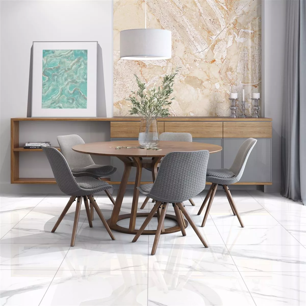 30 kg painavat ne ovat kestäviä ja sopivat sisä- ja kosteisiin tiloihin. Lattialämmitysominaisuus tekee siitä mukavan valinnan kylmiin päiviin. Uppoudu näiden marmorin näköisten laattojen ajattomaan kauneuteen ja anna huoneillesi jalo tunnelma.