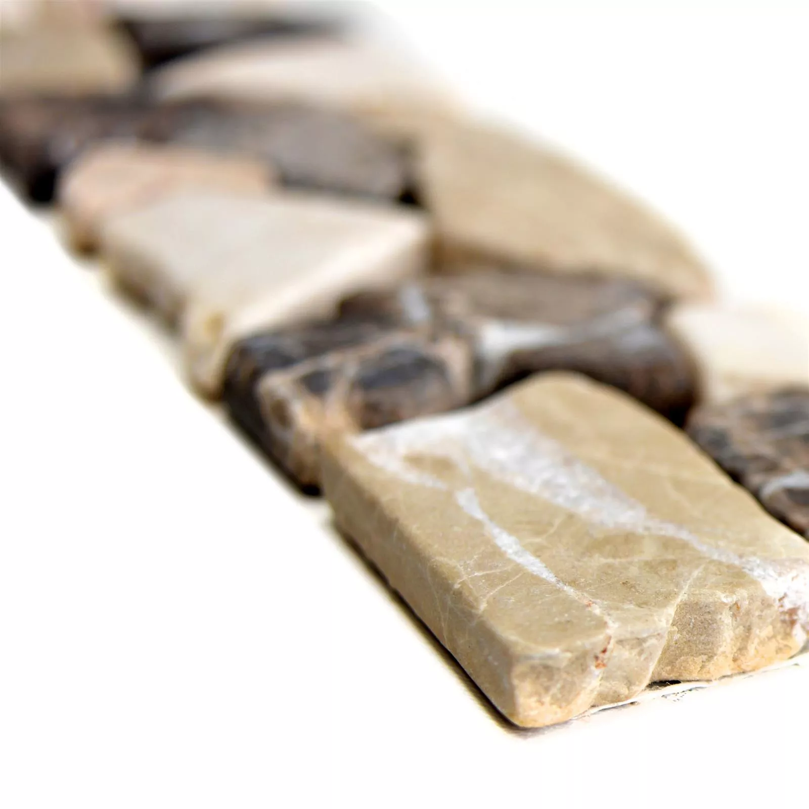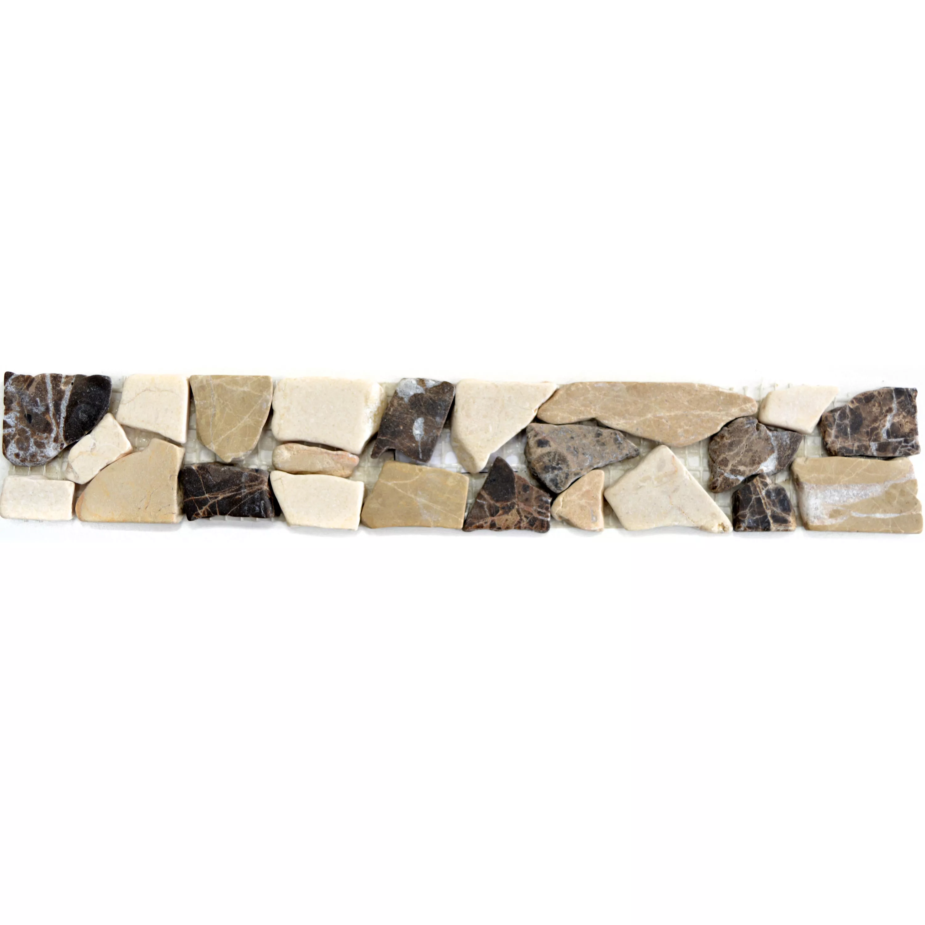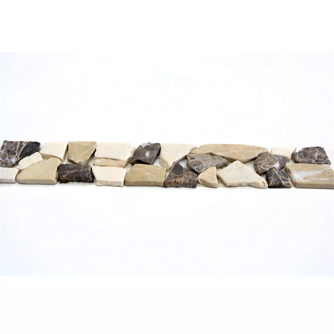 Kylpyhuoneen muuttaminen hyvän olon paratiisiksi - pääset askeleen lähemmäksi tätä tavoitetta Riesco-sarjan luonnonkivilaattareunuksella. Koska jokainen haluaa viihtyä omassa kylpyhuoneessaan. Tällä Riesco-kivilaattareunuksella maton mitat ovat 5 senttimetriä x 30 senttimetriä. Mosaiikkimainen reunus on valmistettu luonnonkivestä ja tuo kylpyhuoneeseen palan luontoa. Kylpyhuonelaatat luovat konseptin, joka muistuttaa luonnon kauneutta ja sen symbolista vapautta. Tämän kylpyhuoneen laattareunuksen ansiosta voit kuvitella seisovasi vesiputouksen vieressä oman kylpyammeesi vieressä. Kylpyhuoneeseen tarkoitetun reunuksen kivikoko vaihtelee 20-40 millimetrin välillä. Nämä eri koot tekevät kylpyhuoneen Riescon luonnonkivilaattareunuksen yleisilmeestä entistä luonnollisemman ja tarjoavat myös upean mosaiikkivaikutelman.