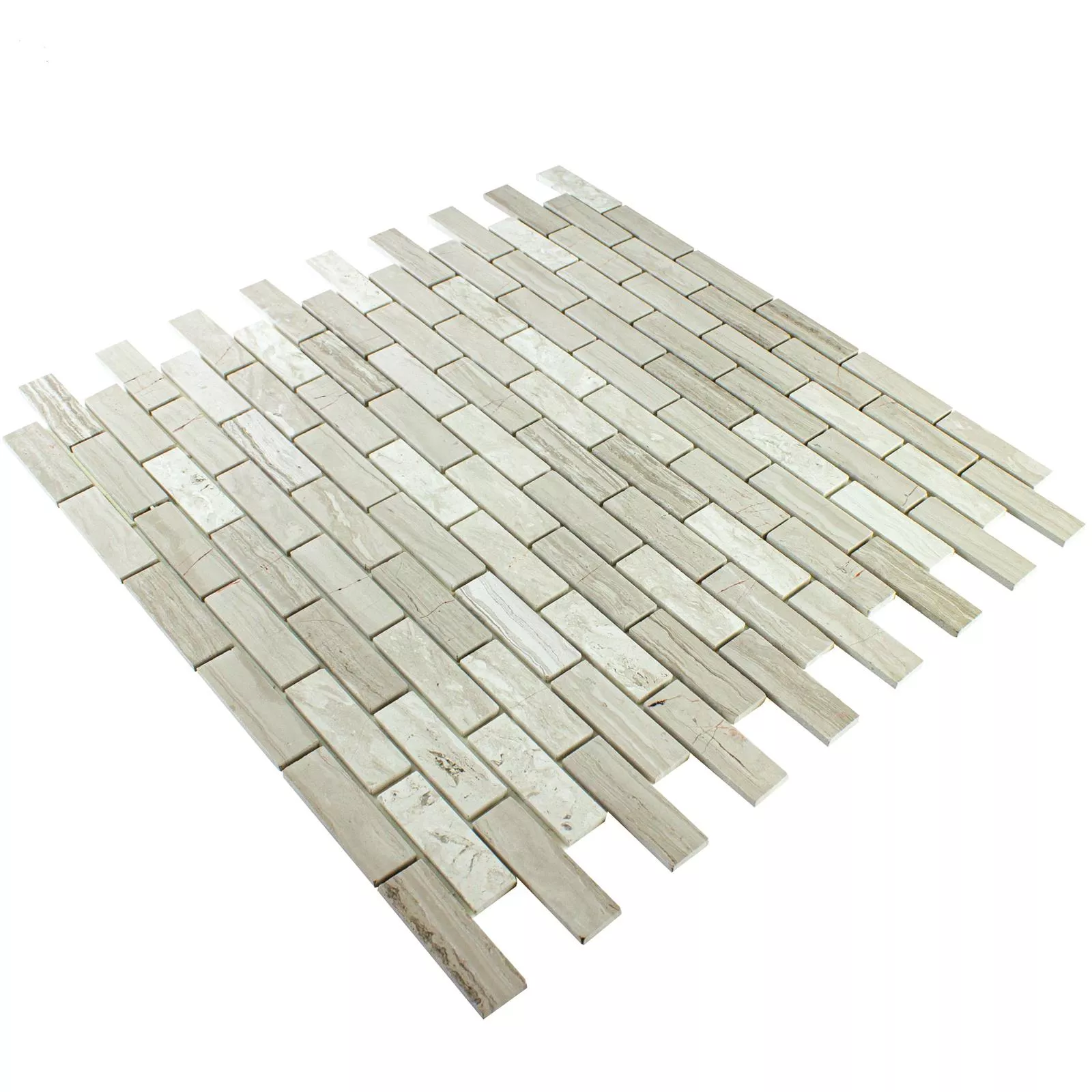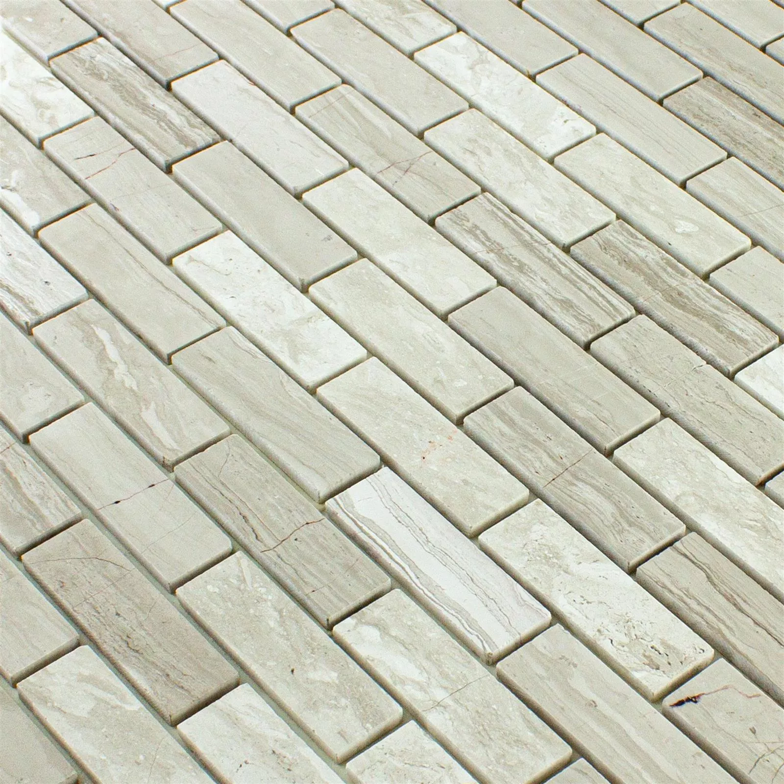 Käytetty luonnonkivi, travertiini, tunnetaan kauneudesta ja kestävyydestään. Jokaisen kiven koko on 15x48mm ja mattapintainen viimeistely antaa sille lempeän ja miellyttävän ulkonäön. Luonnonkiven hienovarainen rakenne sopii saumattomasti kokonaiskuvaan ja luo harmonisen tunnelman huoneeseesi.