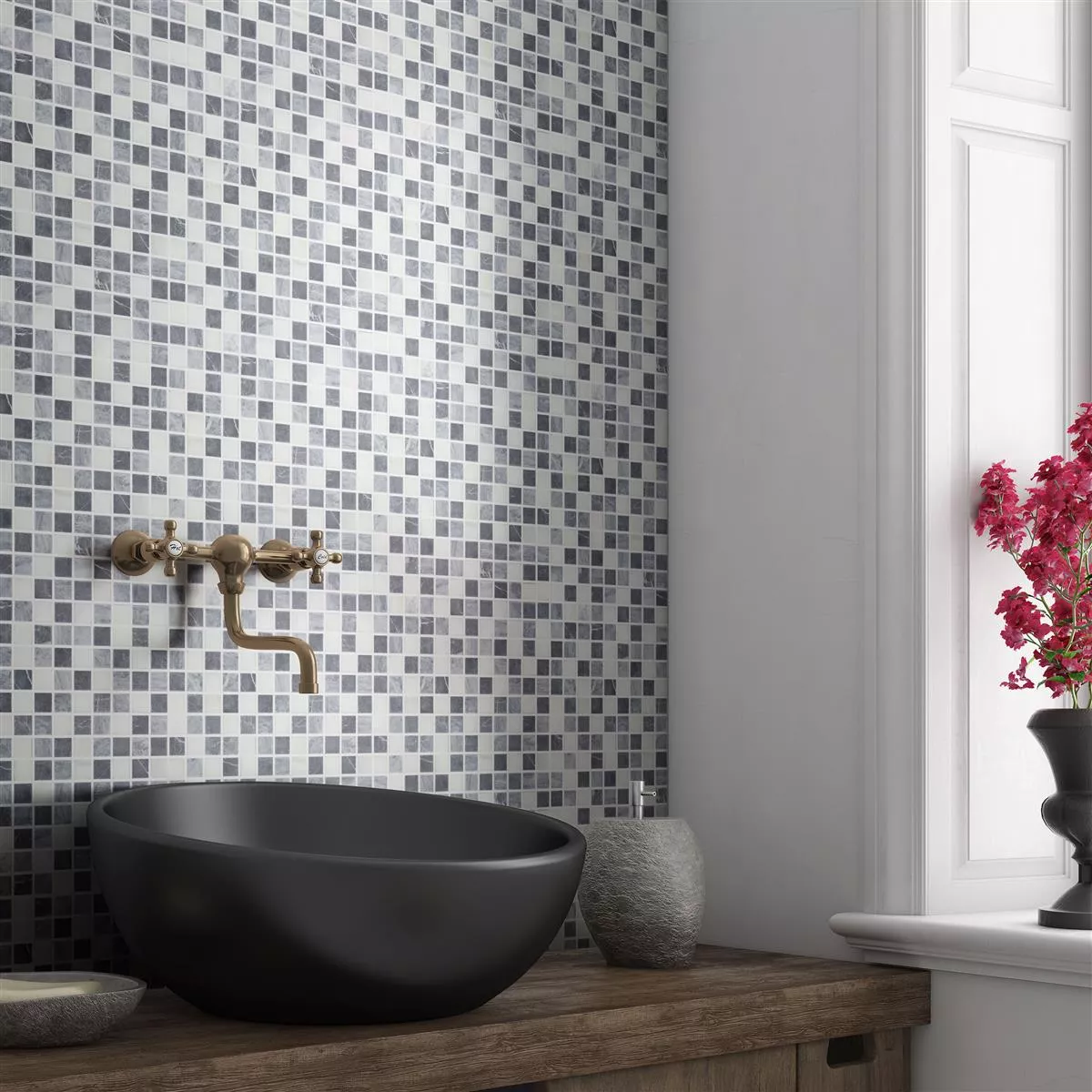 Marmori Luonnonkivi Mosaiikki Laatat Stanford Harmaa Valkoinen