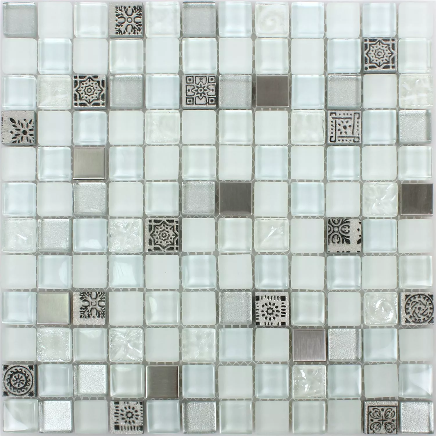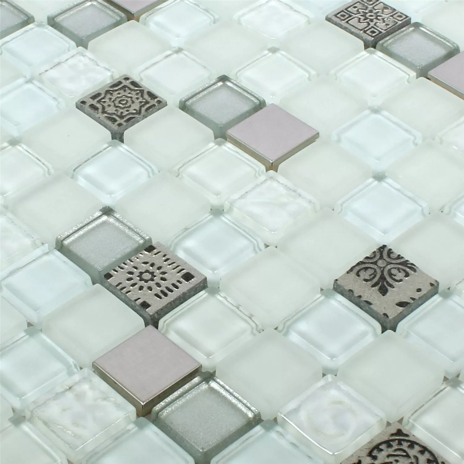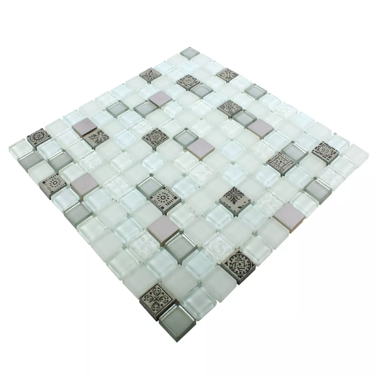 Mosaiikki Laatat Lasi Hartsi Ruostumaton Teräs Mix Gramos Valkoinen