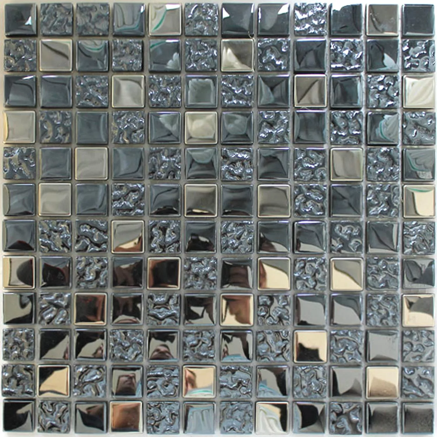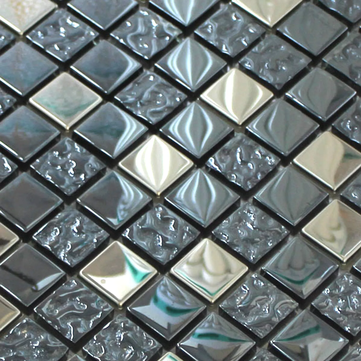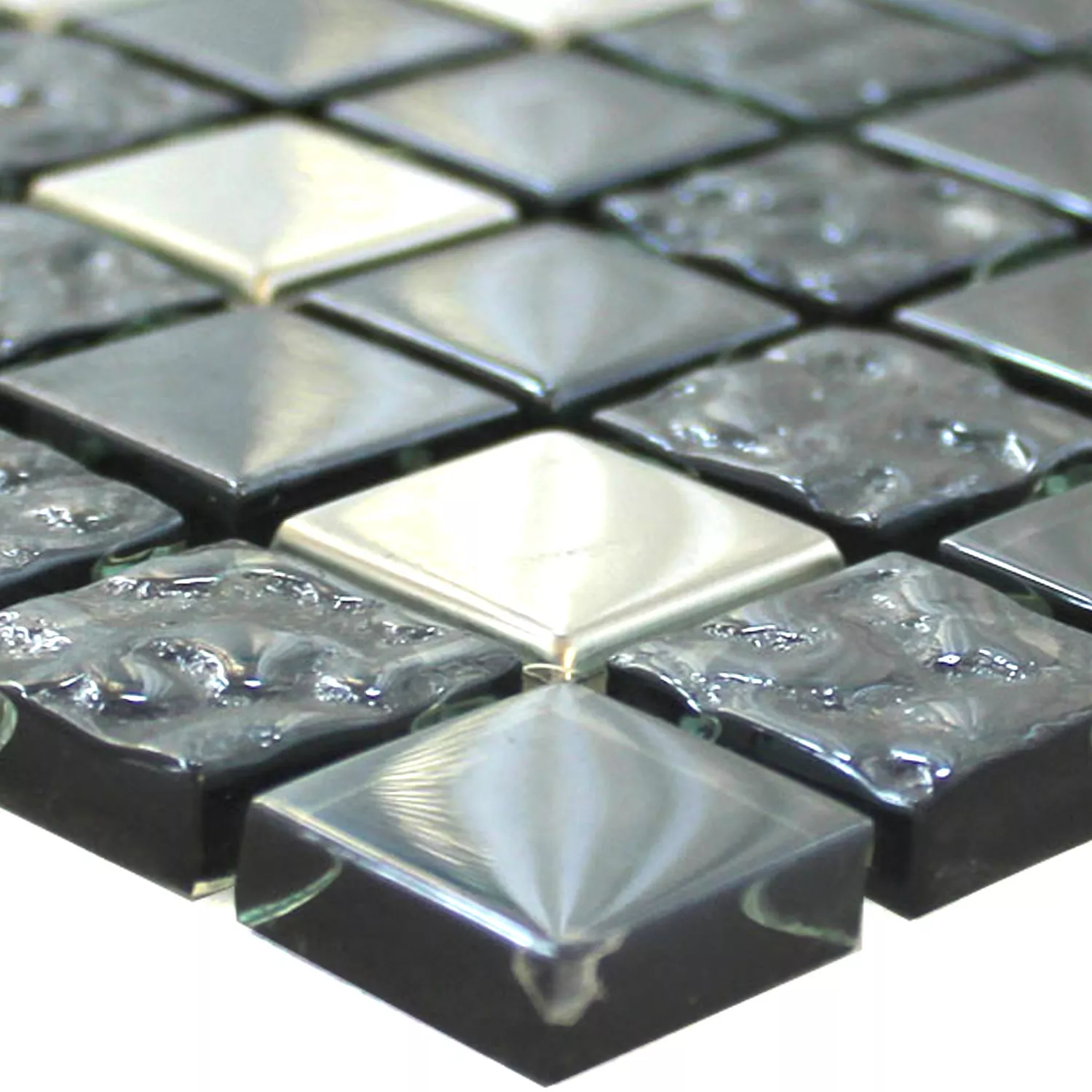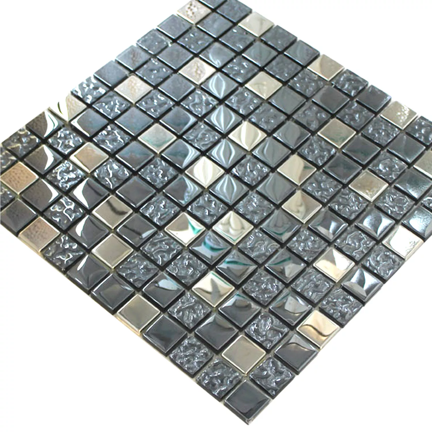 Mosaiikkilaatat on valmistettu metallista ja lasista. Niiden pinta on harjattu, harjattu ja kauniisti kiiltävä. Laattoja on saatavana kivikokoina 15 x 15 mm ja 23 x 23 mm ja niiden paksuus on 8 mm. Ne kiinnitetään 30 x 30 cm kokoiseen mattoon ja ne voidaan laskea nopeasti ja helposti itse.