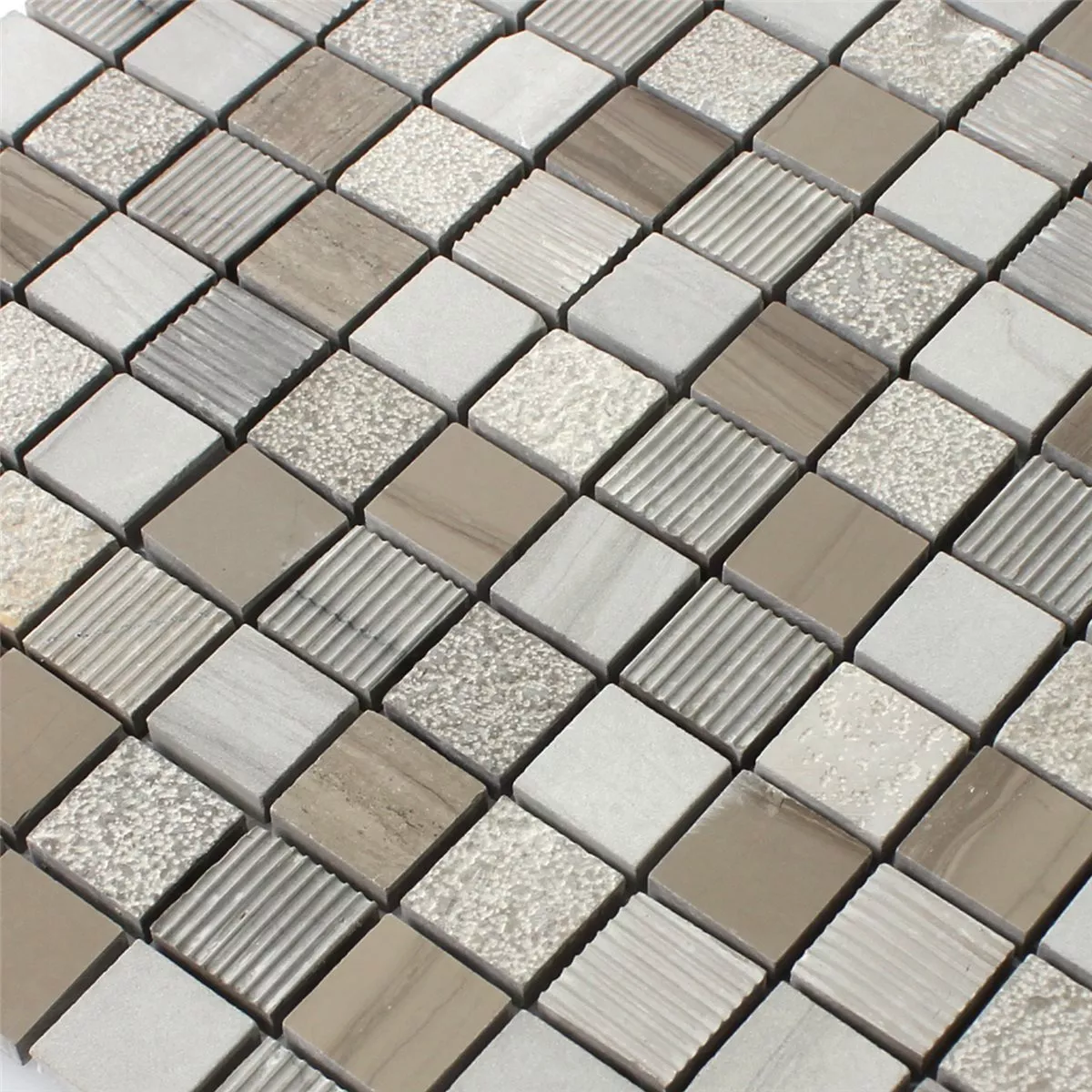 Yli 400 000 vuotta sitten ihmiset koristelivat lattiansa ja seinänsä värikkäästi suurilla ja pienillä marmorimosaiikeilla. Marmoroitu mosaiikki on edelleen erittäin suosittu tänään. Tämäntyyppiset seinä- ja lattiapäällysteet osoittautuvat aina kestäviksi, vankkaiksi ja vettä hylkiviksi. Marmorimosaiikkia käytetään seinä- ja lattiamotiivina kylpyhuoneissa, keittiöissä, wc:issä, uima-altaissa, wellness-alueilla, saunoissa ja terveydenhuollon tiloissa. Marmorimosaiikki imee kosteuden, kosteuden, lämmön, lämmön ja auringonsäteet. Marmorimosaiikki on yksivärinen tai värikäs pyöreillä tai neliömäisillä laatoilla. Suunnittelu voidaan luoda yksilöllisesti tai valmistajan määrittelemä.
