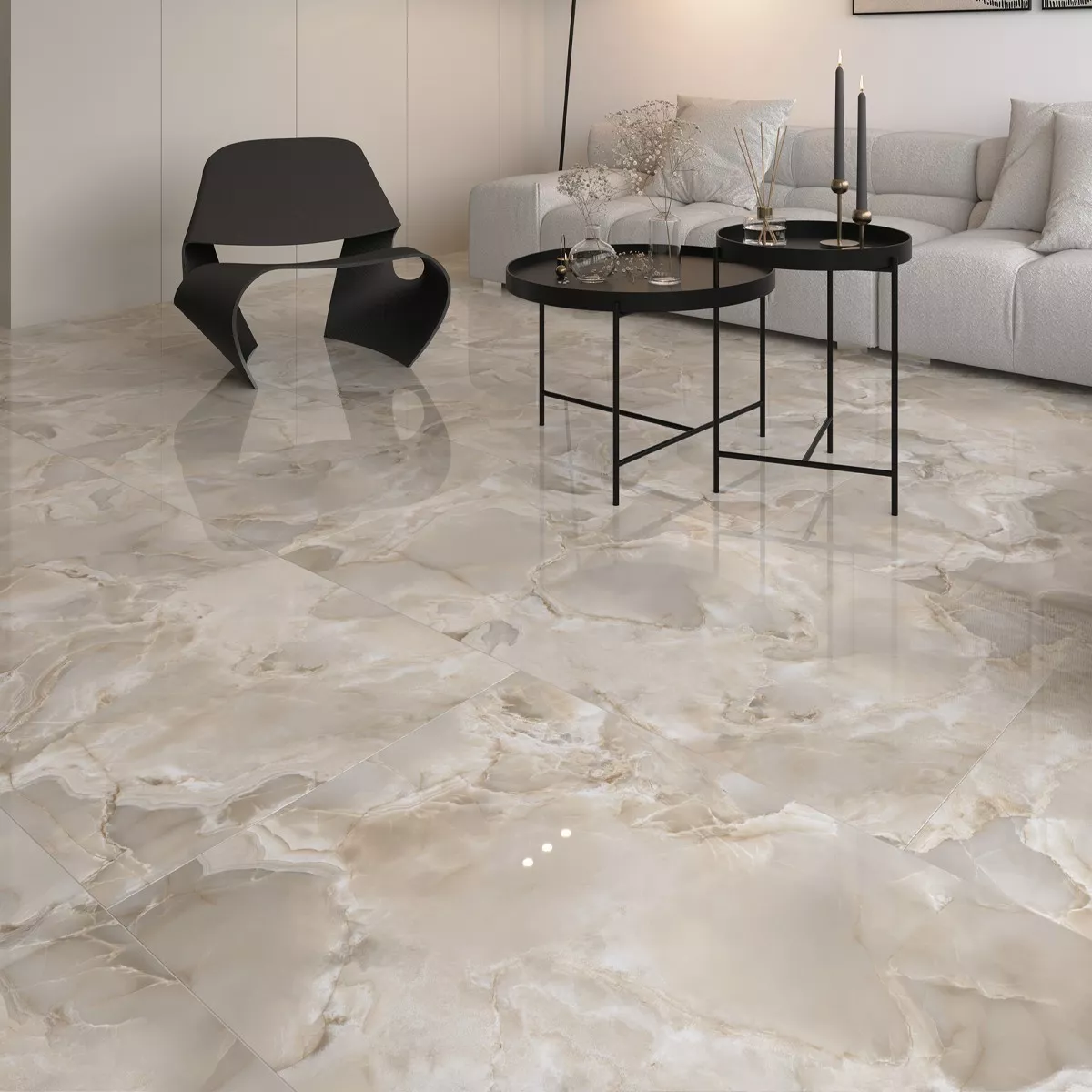 Posliinilaatta erottuu edukseen myös vedenkestävyytensä ja sopivuutensa lattialämmitykseen ansiosta. Sen kiillotettu pinta ja kermanvärinen viimeistely mahdollistavat sen sulautumisen saumattomasti moniin värimaailmoihin.
