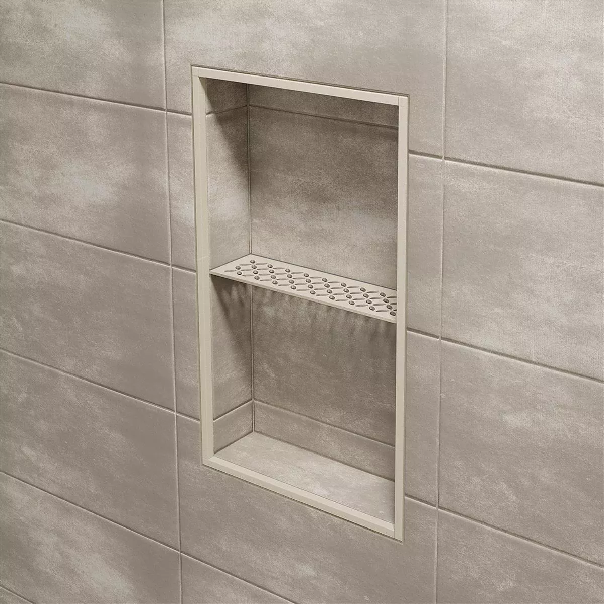 Schlüter-SHELF-N-S1 Elfenbein Rechteckige Nischen-Wandablage Mit Schlüter-SHELF-N-S1 können Sie während der Fliesenverlegung die vorgefertigte Nische Schlüter-KERDI-BOARD mit einer passgenauen Ablage ausstatten. Damit nicht genug: Sie haben hier auch noch maximale Flexibilität in Sachen Material und Design. So ist die hochwertige Nischen-Wandablage entweder aus gebürstetem Edelstahl oder strukturbeschichtetem Aluminium gefertigt.
