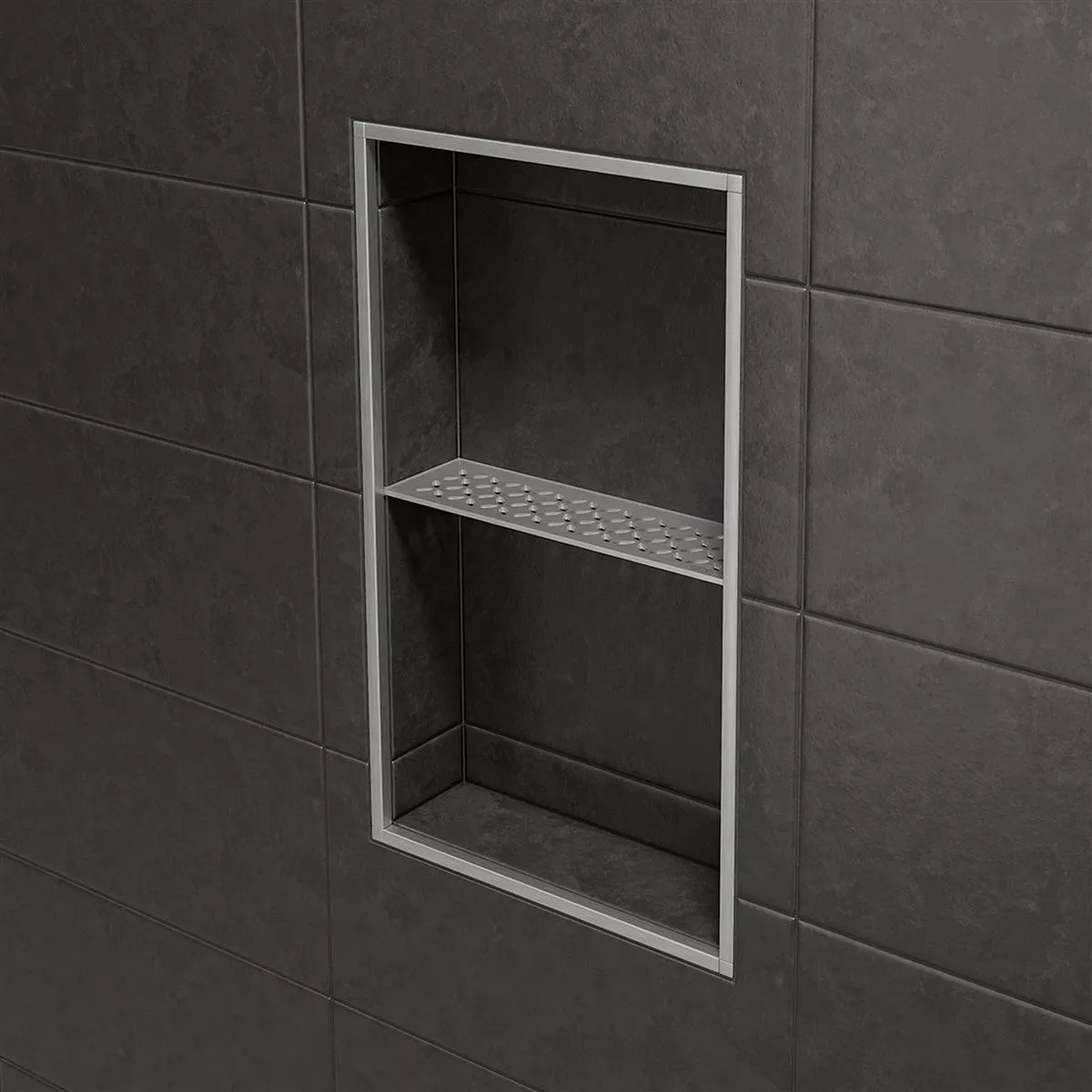 Schlüter-SHELF-N-S1 Silber Rechteckige Nischen-Wandablage Mit Schlüter-SHELF-N-S1 können Sie während der Fliesenverlegung die vorgefertigte Nische Schlüter-KERDI-BOARD mit einer passgenauen Ablage ausstatten. Damit nicht genug: Sie haben hier auch noch maximale Flexibilität in Sachen Material und Design. So ist die hochwertige Nischen-Wandablage entweder aus gebürstetem Edelstahl oder strukturbeschichtetem Aluminium gefertigt.