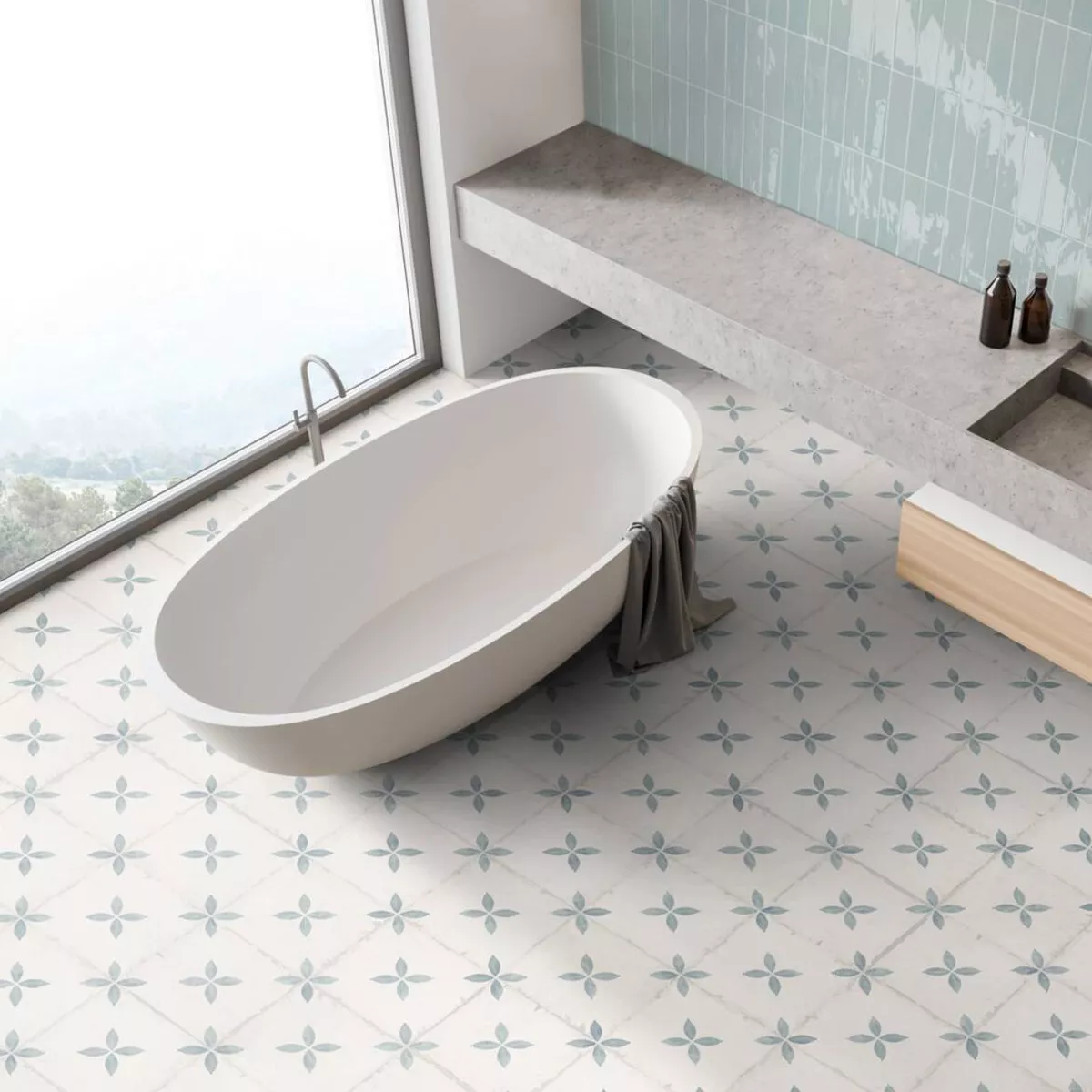 Tämä korkealaatuinen posliinikivitavaralaatta tunnetusta Pelin-laattakokoelmasta on monipuolisuutensa ansiosta yhteensopiva ja sen avulla voit kaunistaa useita kodin huoneita samanaikaisesti. Olipa kyseessä keittiö, kylpyhuone, talvipuutarha, käytävä tai olohuone – vaaleansininen ja kermanvärinen lattialaatta näyttää upealta missä tahansa huoneessa.