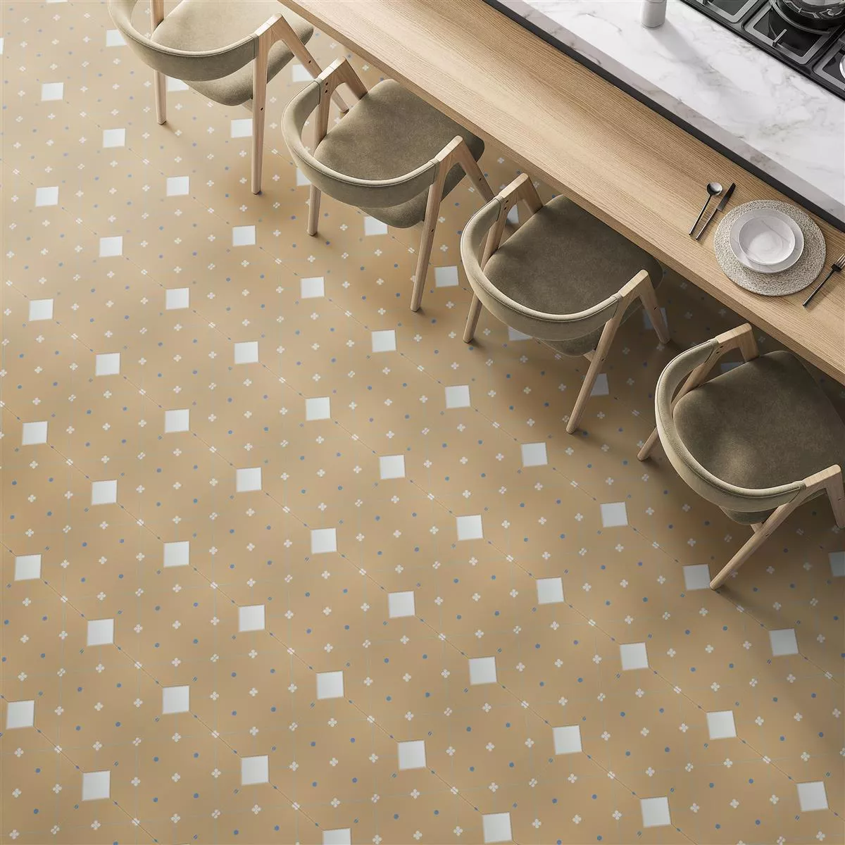 Posliinikivitavaralaatat Genexia Decor Beige Octagon 20x20cm - menneisyyden charmia kotiisi