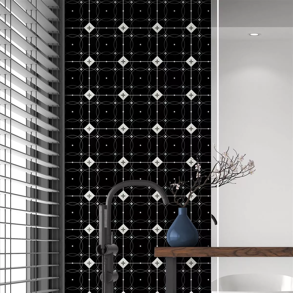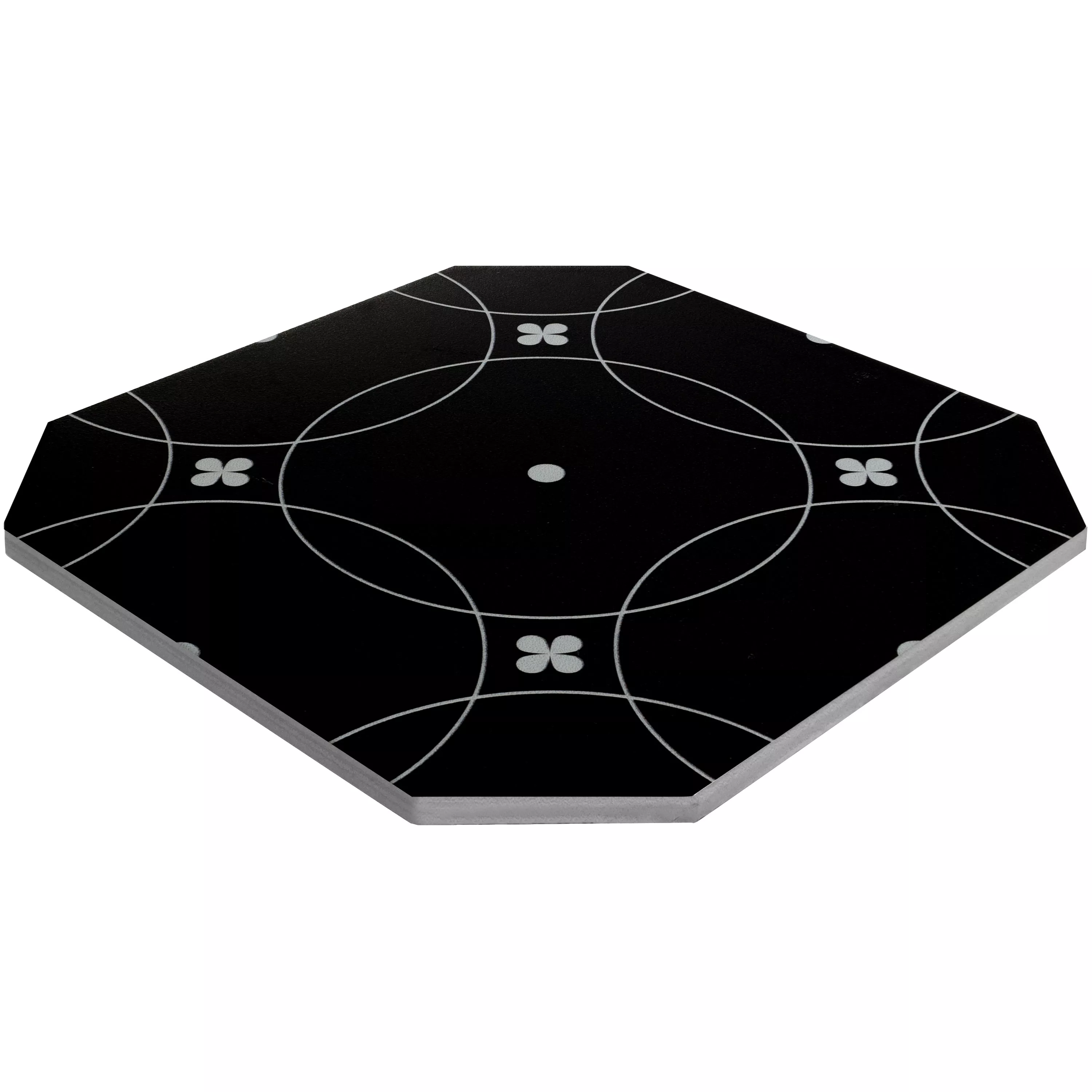 Posliinikivilaatat Genexia Black White Decor 1 Octagon - retro-tyyliä huoneeseesi