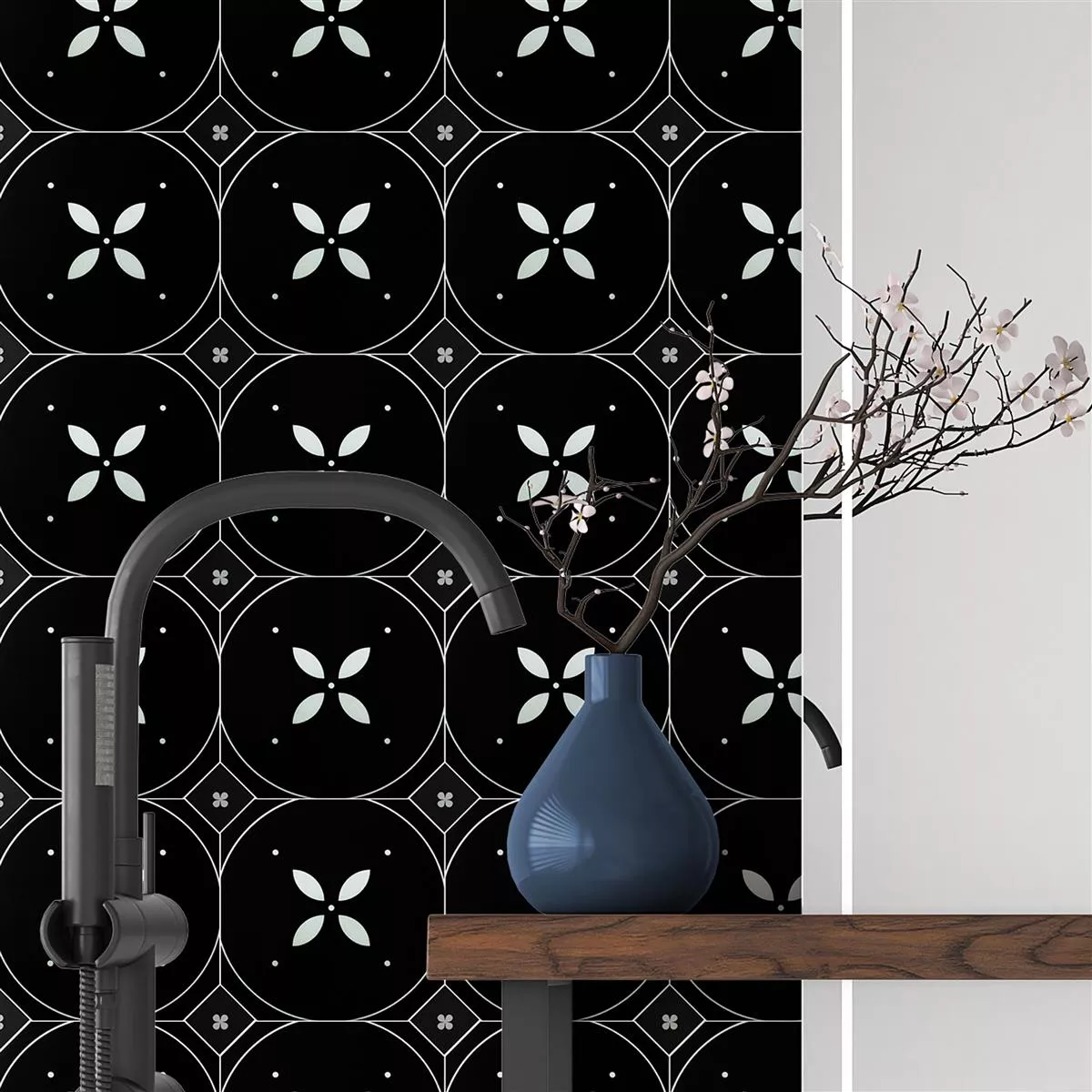 Posliinikivitavaralaatat Genexia Black White Decor 1 insertti - ajatonta eleganssia neliössä