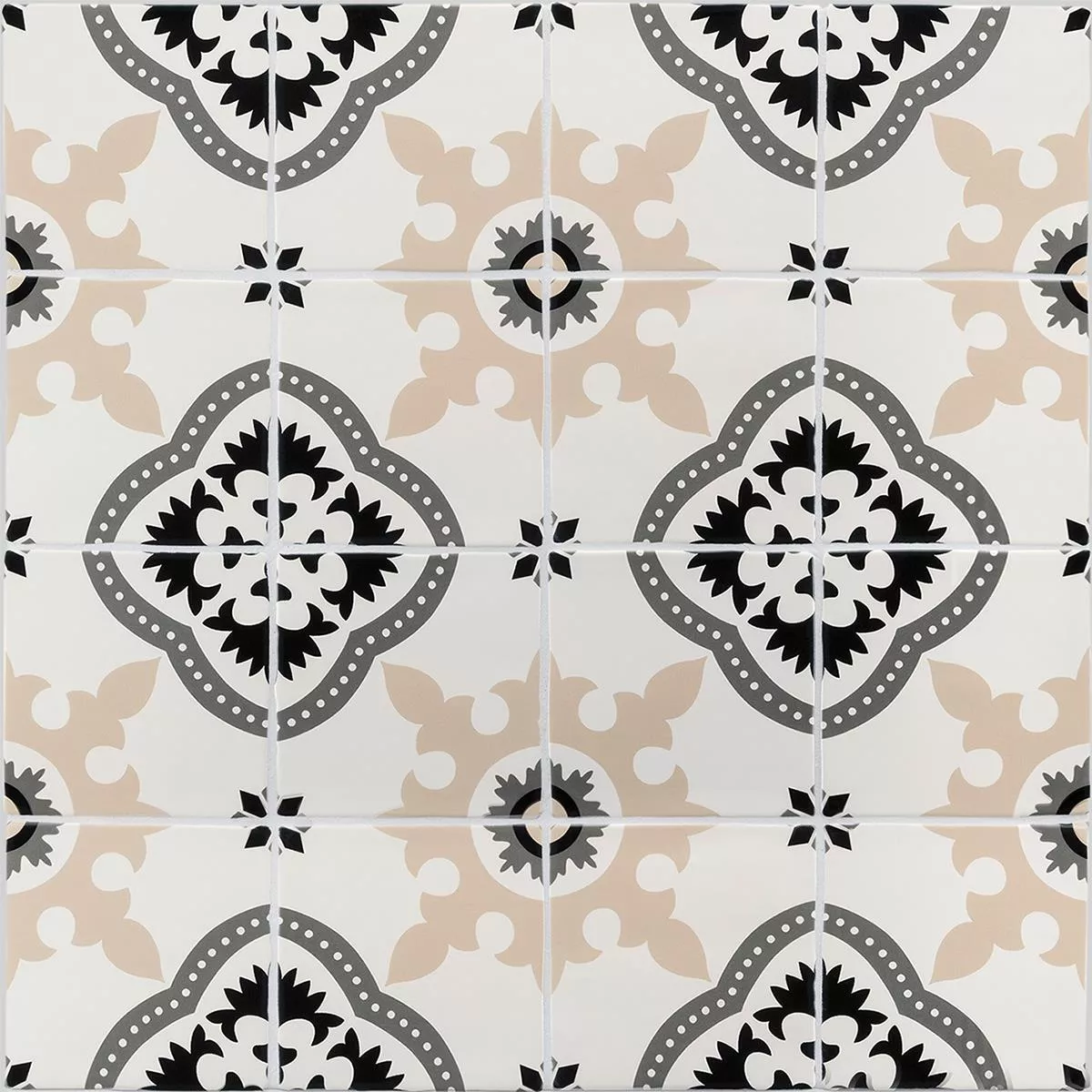 Ornamenti Mantova posliiniset kivitavaralaatat, joiden laatan koko on 13,9x13,9 cm, tarjoavat sie ainutlaatuisen elämyksen hurmaavalla kukkailmellään harmaan, beigen ja valkoisen sävyissä. Matta, lasitettu pinta ja 8 mm:n paksuus eivät ainoastaan tarjoa esteettistä vetovoimaa, vaan myös kestävyyttä.