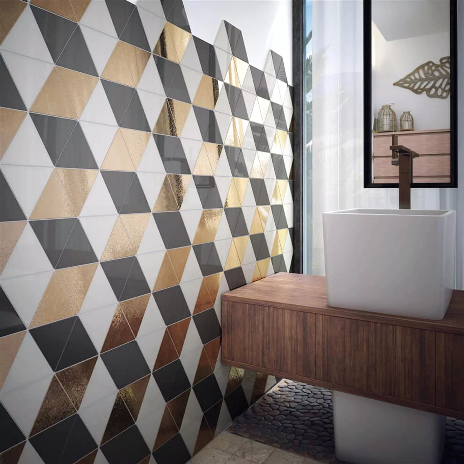Ainutlaatuinen Britannia-seinälaatta, jonka koko on 10,8x12,4 cm, tekee vaikutuksen paitsi kolmiomaisella muodollaan. Tukevan laatan paksuus on 9,3 mm ja se sopii moniin luoviin projekteihin, mieluiten sisätiloihin. Materiaali on kivitavaraa. Sitä on saatavana sinisenä, kermana, kultaisena, harmaana, vaaleansinisenä, vaaleanharmaana, minttuna, mustana, valkoisena ja beigenä, ja se on katseenvangitsija joka huoneessa.