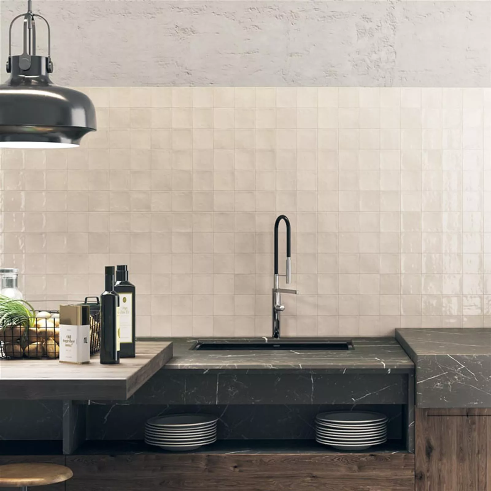Seinälaatta Cap Town Kimaltelevaa Aaltoileva 10x10cm Norsunluu
