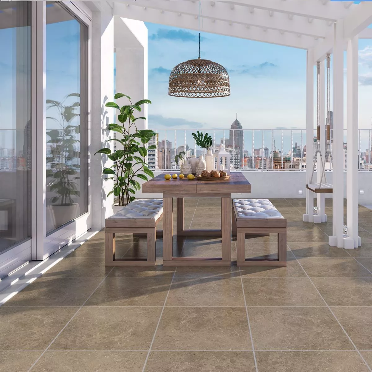 Arizona Taupe luonnonkiven näköinen posliinikivitavaraterassilaatta 60x60x2 cm tarjoaa tyylikkään ja pitkäikäisen ratkaisun ulkotiloihin. Tämä taupe-värinen neliönmuotoinen lattialaatta tekee vaikutuksen korkealaatuisella luonnonkivellä ja mattapinnalla. Se on suunniteltu erityisesti ulkolaatoiksi ja sopii ihanteellisesti terasseille, parvekkeille ja käytäville.