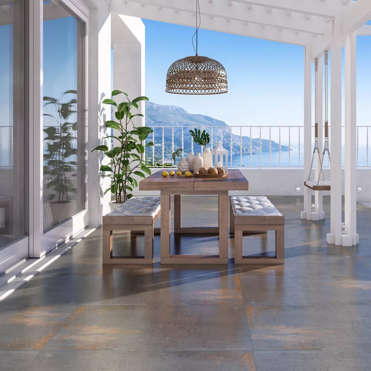 Das rechteckige Format und die matte, glasierte Oberfläche verleihen der Fliese eine moderne und zeitlose Ästhetik, die sich harmonisch in verschiedene Umgebungen einfügt. Hergestellt aus hochwertigem Feinsteinzeug, ist die Terrassenplatte extrem widerstandsfähig gegen Abnutzung und zeichnet sich durch eine hohe Abriebfestigkeit (Abriebklasse 4) aus. Sie ist frostbeständig und frostsicher, sodass sie auch bei niedrigen Temperaturen keine Schäden erleidet. Die rektifizierten Kanten ermöglichen eine präzise und enge Fugenverlegung, während die glasierte Oberfläche zusätzlichen Schutz und Langlebigkeit bietet. Mit einer Rutschhemmung von R10 sorgt die Platte zudem für erhöhte Sicherheit.