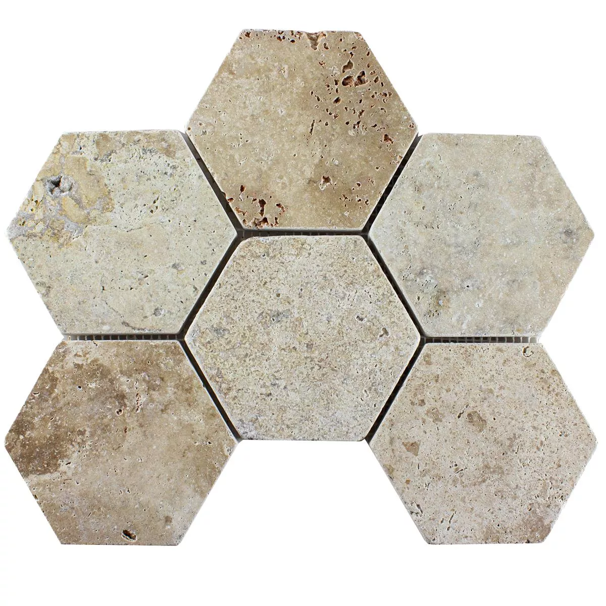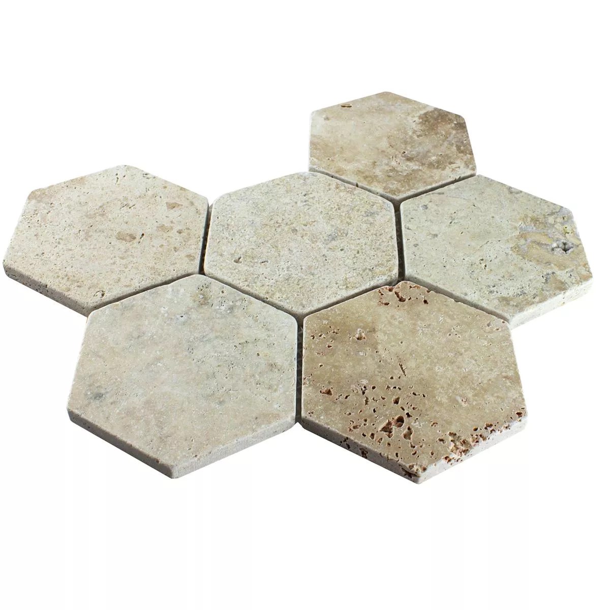 Travertiini Luonnonkivi Mosaiikki Laatat Mercado Kuusikulmio Beige