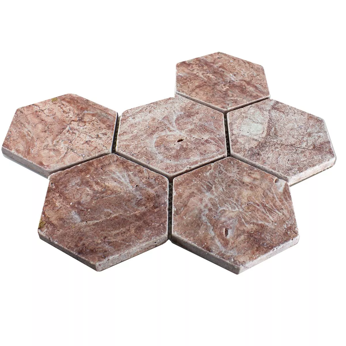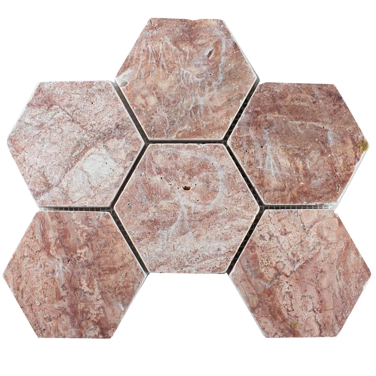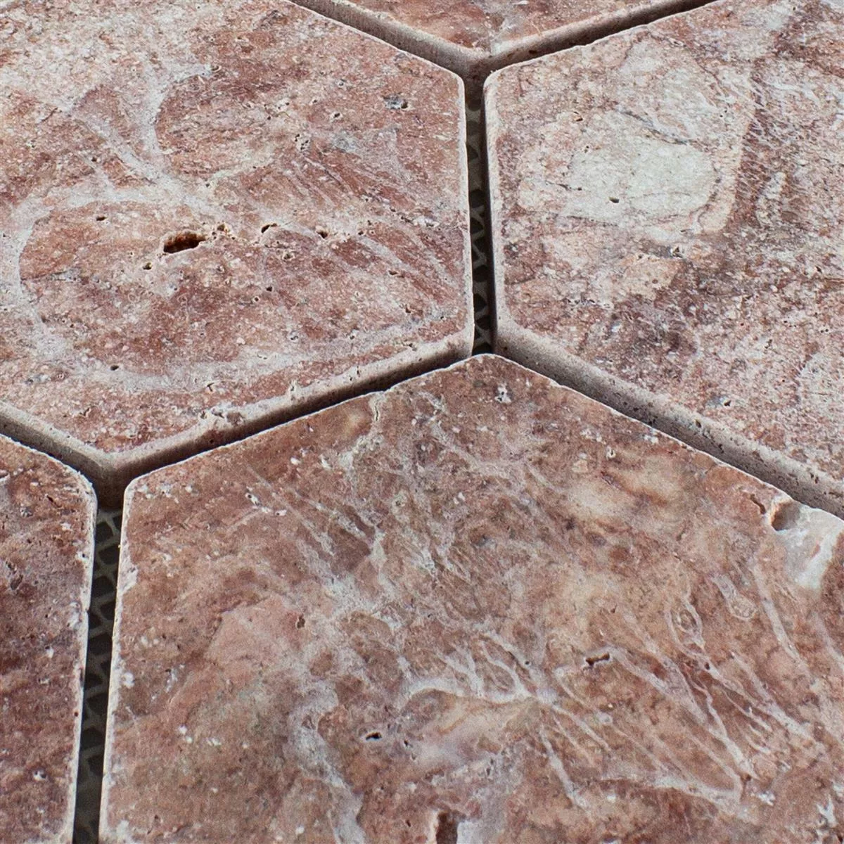 Travertiini Luonnonkivi Mosaiikki Laatat Mercado Kuusikulmio Punainen